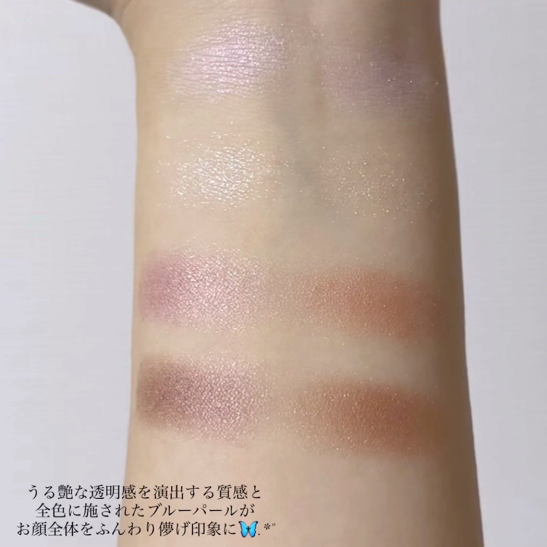 - 数量限定 ※コンパクト表面に透明の保護フィルムがついています。はがしてからお使いください。 4つの異なる質感と、ちらりと輝く青ラメで、透明感あふれる目もとへ仕上げるアイシャドウパレット 〇ベース×彩りカラー×影色×ラメの絶妙な4質感の組み合わせで、大きな目もとへ仕上げる。 〇全色にブルーパールを配合。重ね塗りをしても、透明感あふれる印象に。 〇なめらかな塗り心地でまぶたにしっとりとフィットし、見たままのピュアな発色を実現。ラメカラーは、ラメ飛びしにくい密着ジェリーベース処方を採用。 <使用上の注意> ◇目に入らないようにご注意ください。もし、入った場合は、こすらずにすぐに水かぬるま湯で洗い流してください。目に異物感が残る場合は、眼科医にご相談ください。 ◇落下などの衝撃により、割れることがありますのでご注意ください。 ◇日のあたるところや高温・多湿のところに置かないでください。 ◇コンパクト表面に透明の保護フィルムがついています。はがしてからお使いください。