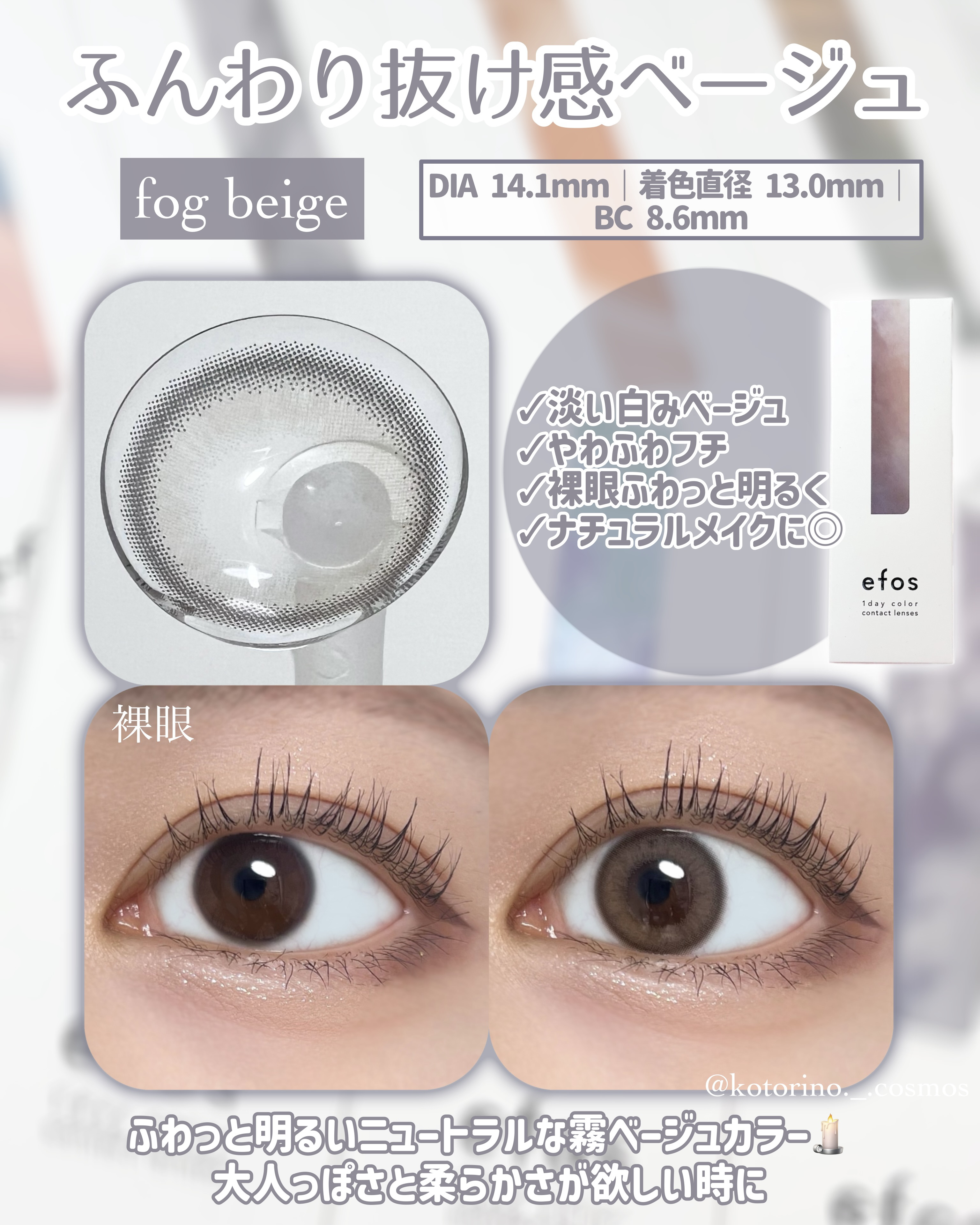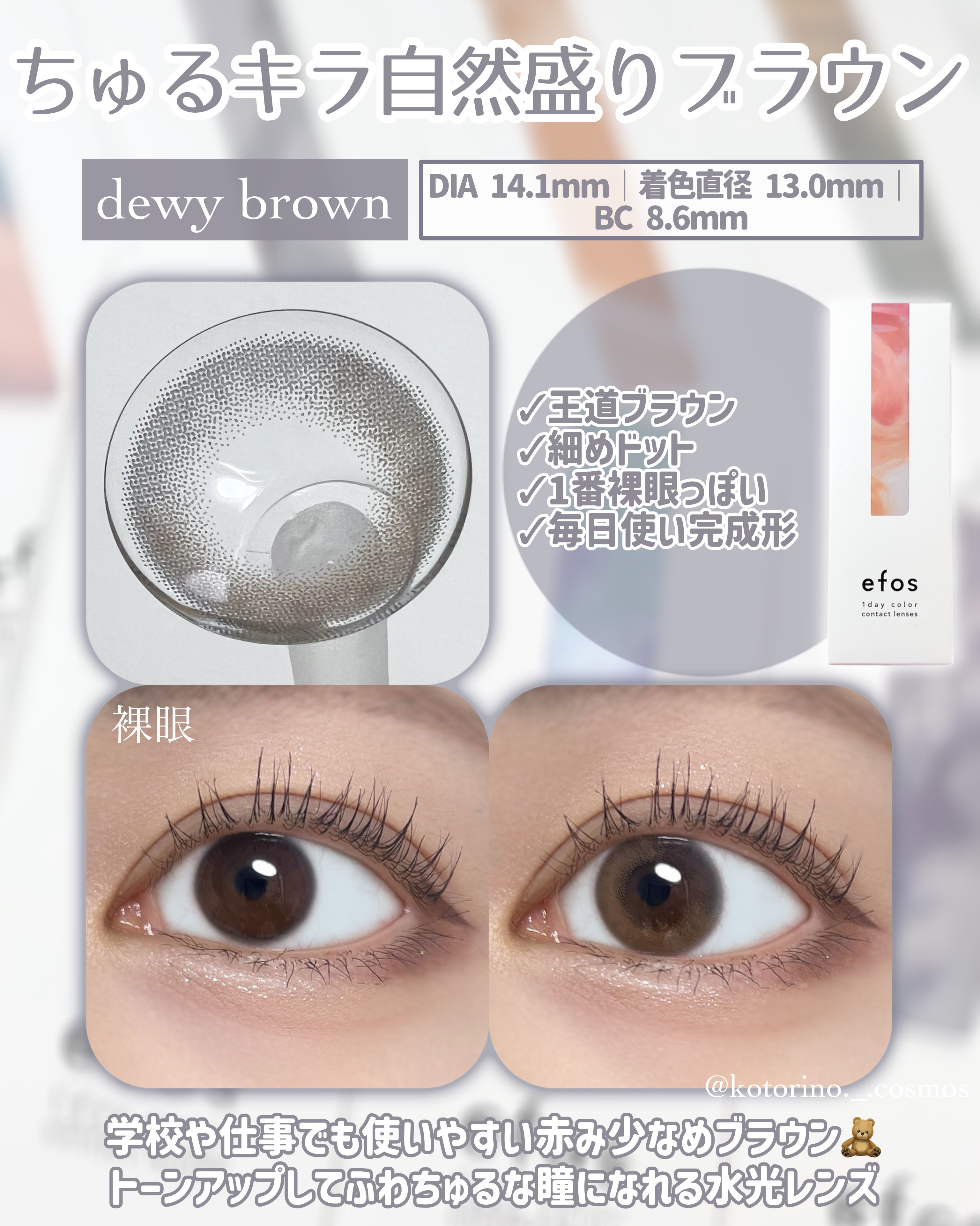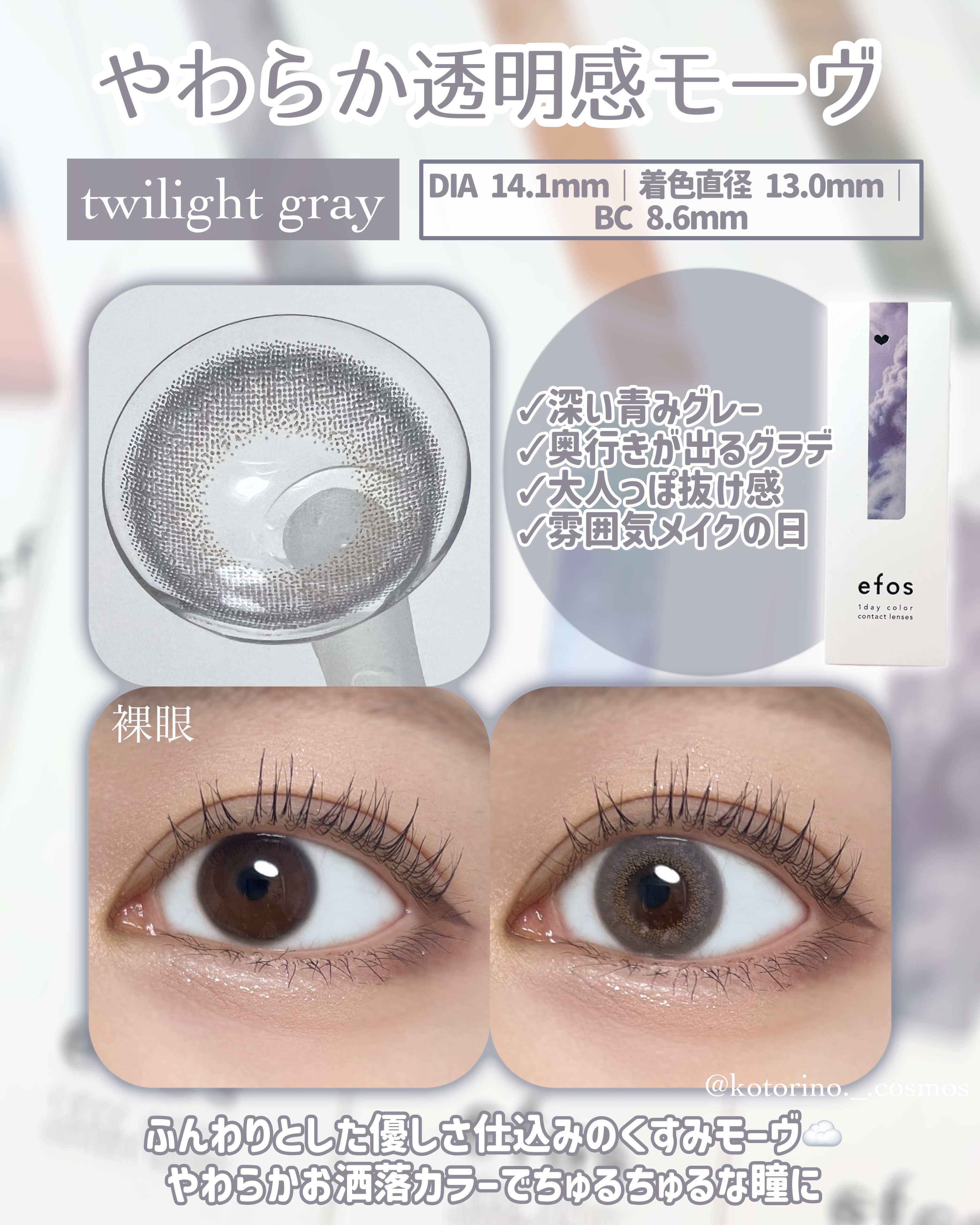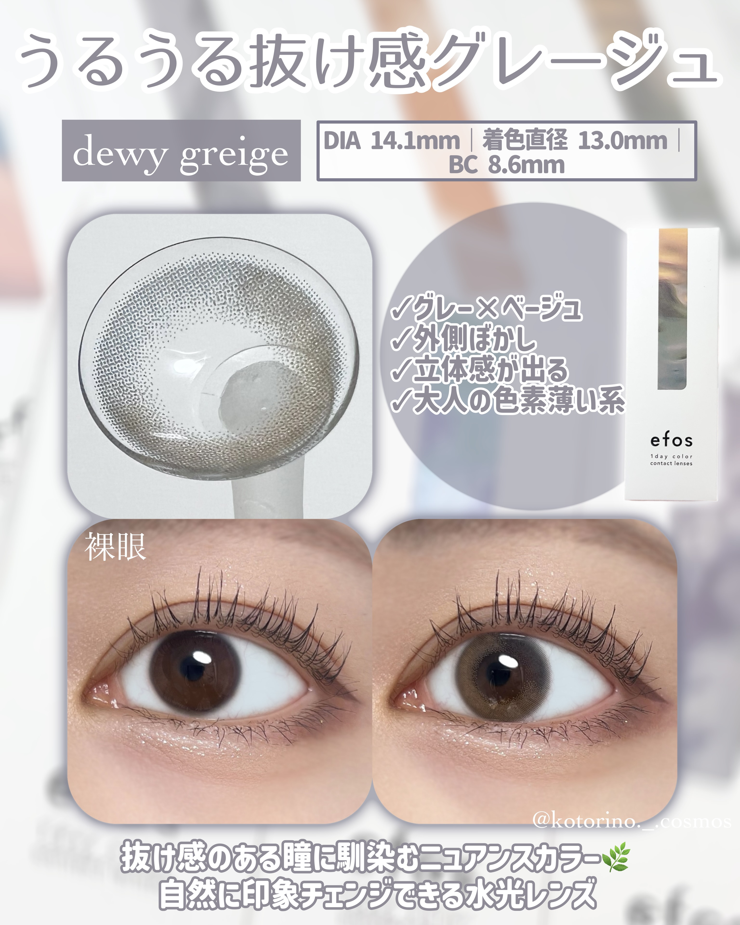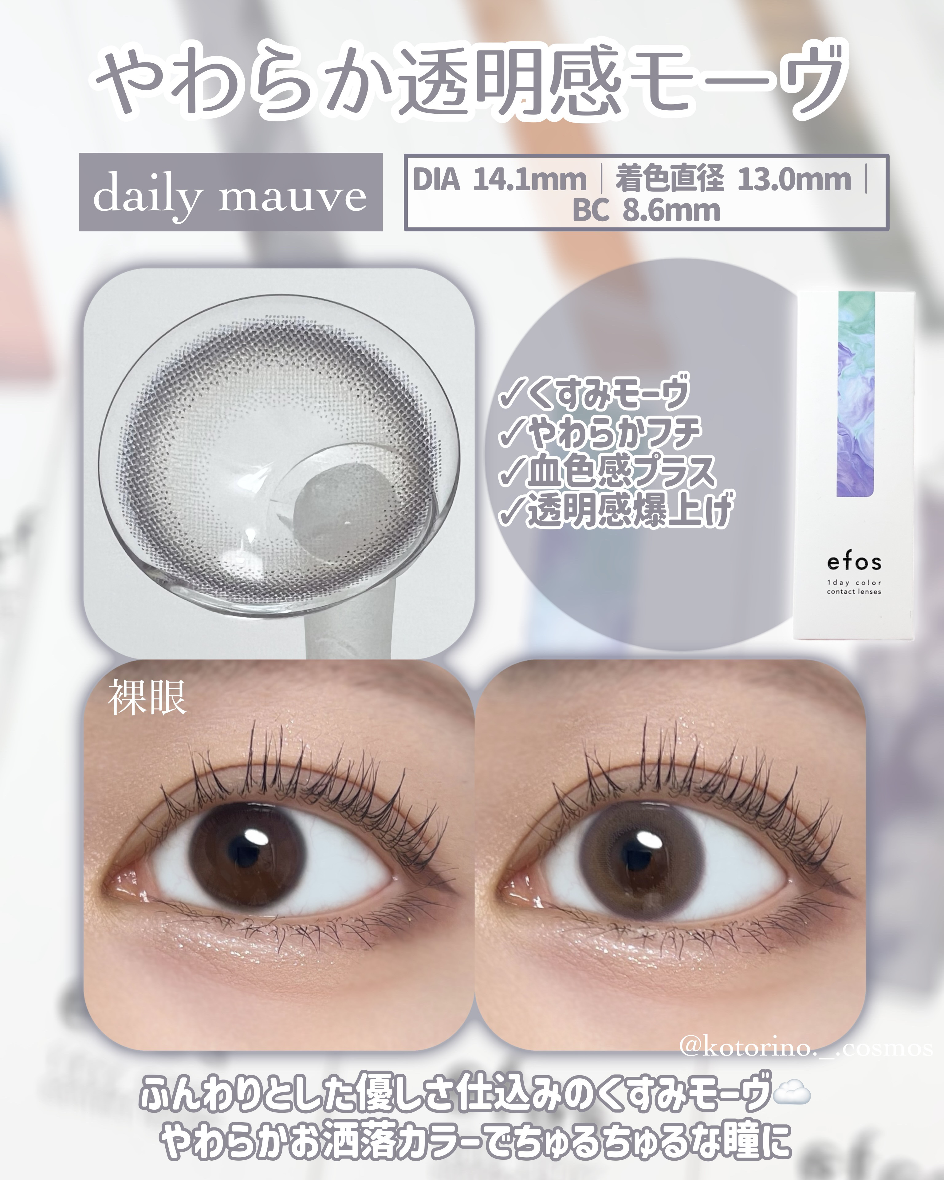 🏷:efos1dayカラーコンタクトレンズ1箱10枚入¥1705【LENSSPEC】DAY:1dayDIA:14.1mm着色直径:13.0mmBC:8.6mm含水率:58%UVカット南りほちゃんイメージモデルのカラコンブランド『efos』ベー...