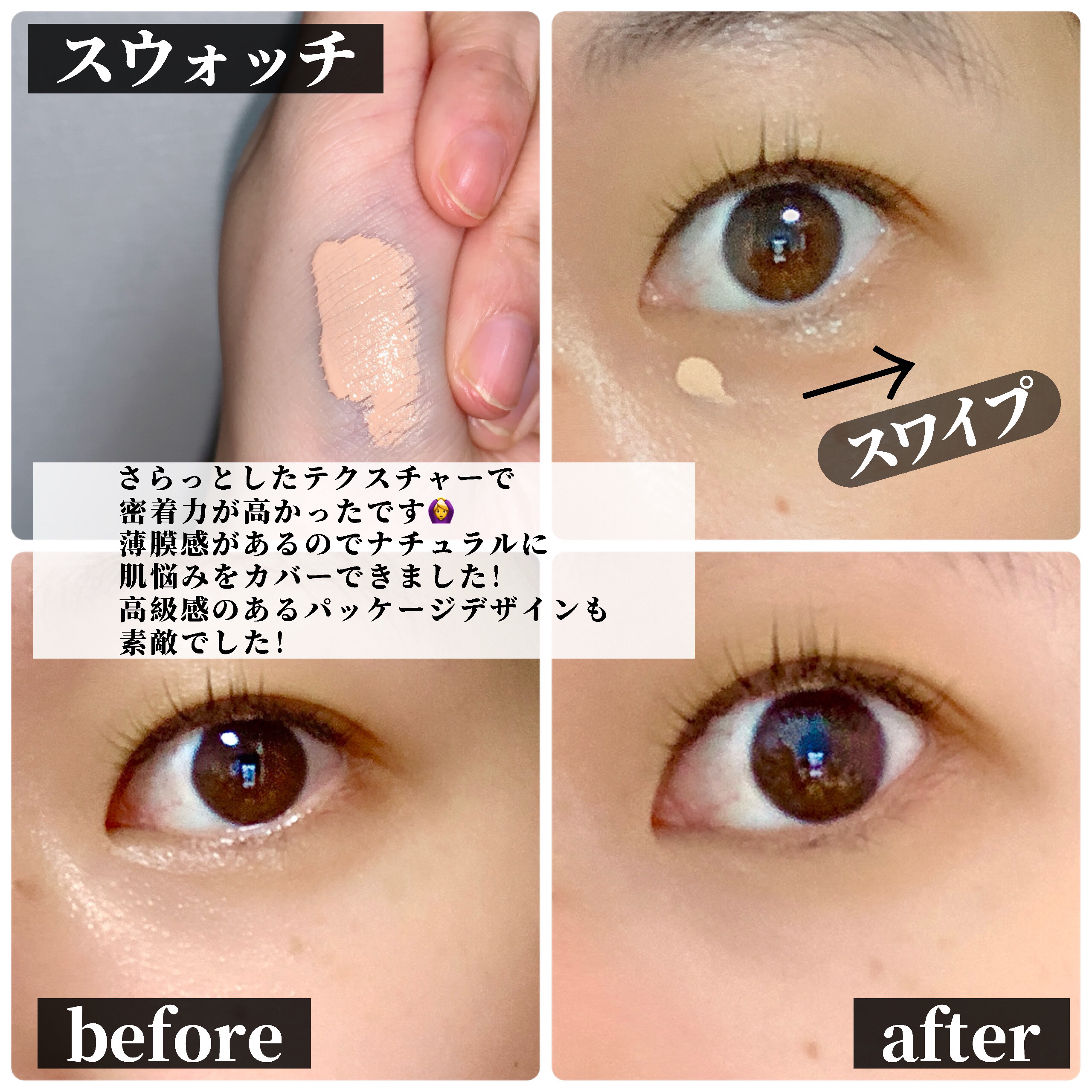 - ドット、スワイプ、グロウで簡単プロ仕上げ! ハイカバーなのに薄膜、ツヤ感あふれる*1 #パール美肌コンシーラー 乾燥しやすい目元・口元をケアする80%美容液ベース*2、31種のスキンケア成分*2 ふっくらハリ感のある仕上がり24時間*3続く #美容液コンシーラー *1 メイク効果による *2 美容液ベース及びスキンケア成分とは、着色剤、製品の防腐剤や安定剤を除く、水や保湿成分、皮膚コンディショニング成分のこと *3 化粧もちデータ取得済。仕上がりには個人差があります。