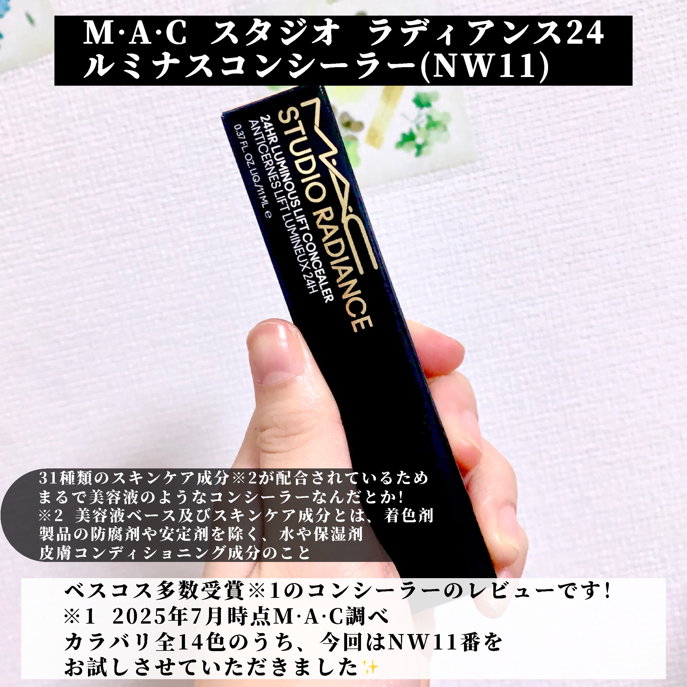 #PR#maccosmeticsjapanM・A・Cスタジオラディアンス24ルミナスコンシーラーNW11容量/価格:11ml/4,510円(税込)ベスコス多数受賞*の#美容液コンシーラー🎊80%美容液ベース**でナイアシンアミド***、ヒアル...