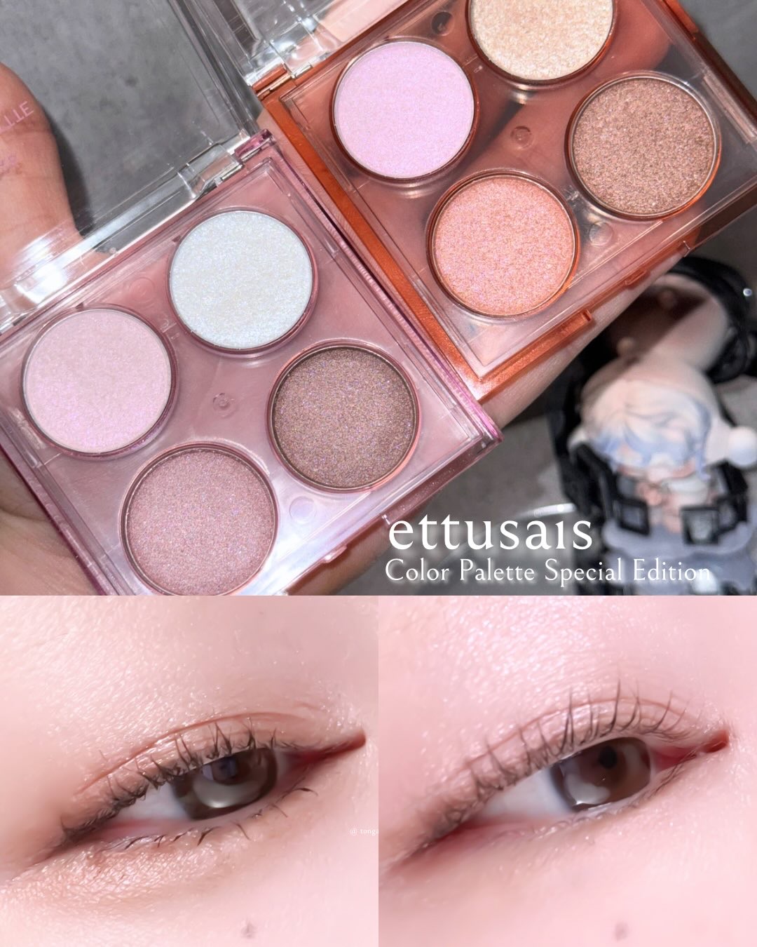 話題の新作✦エテュセ4色パレット\徹底スウォッチ/ettusaisからちゅるんとした目元になれちゃう爆盛りラメ入りの特別パレットが発売されるよ⸝⋆・うるっと愛らしい透明感モーブ01エンジェリックモーブ・きゅるっと甘い透明感ピーチ02シュガーコ...