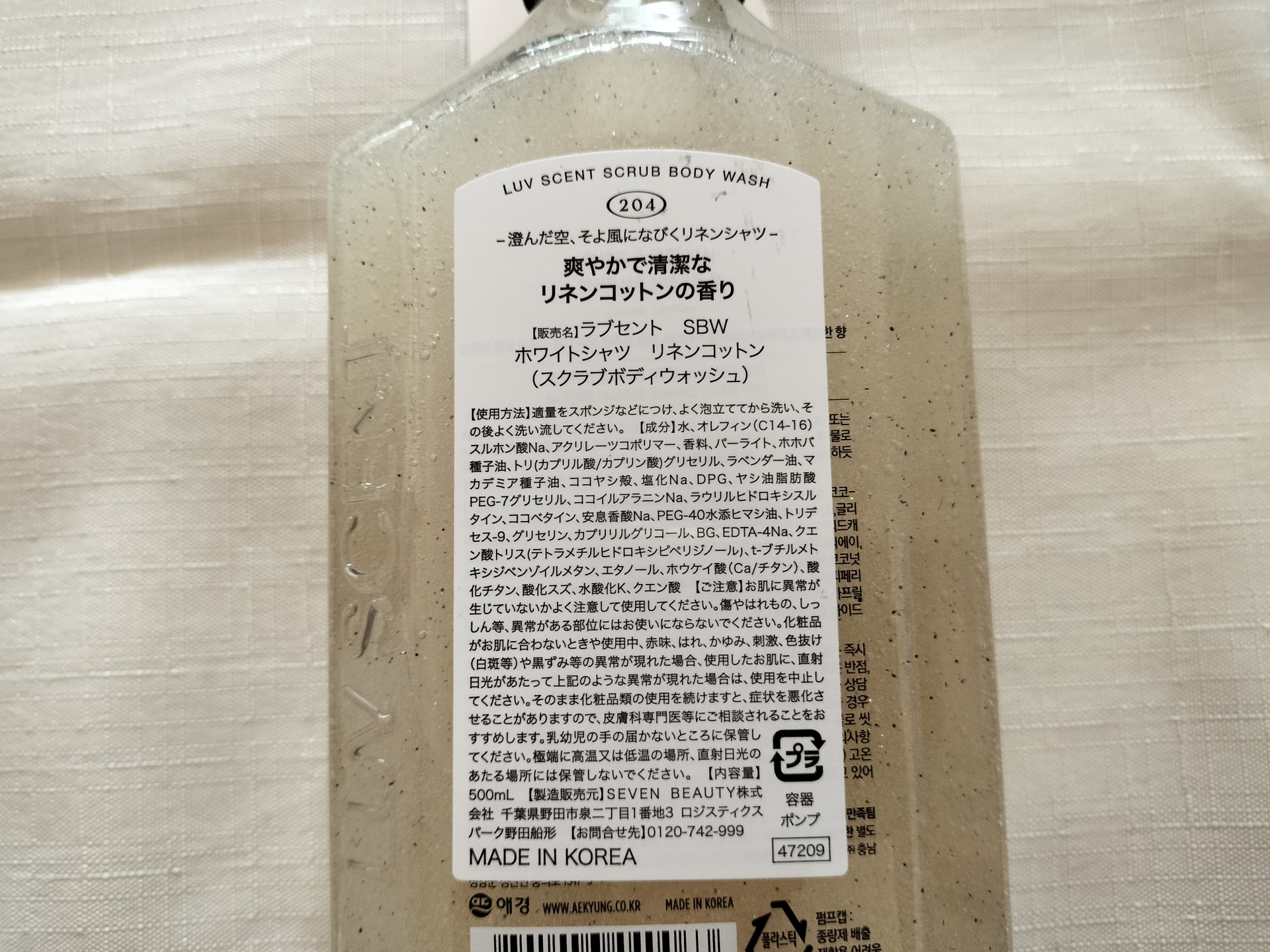 商品詳細情報LUV SCENT スクラブボディウォッシュ ホワイトシャツ リネンコットン