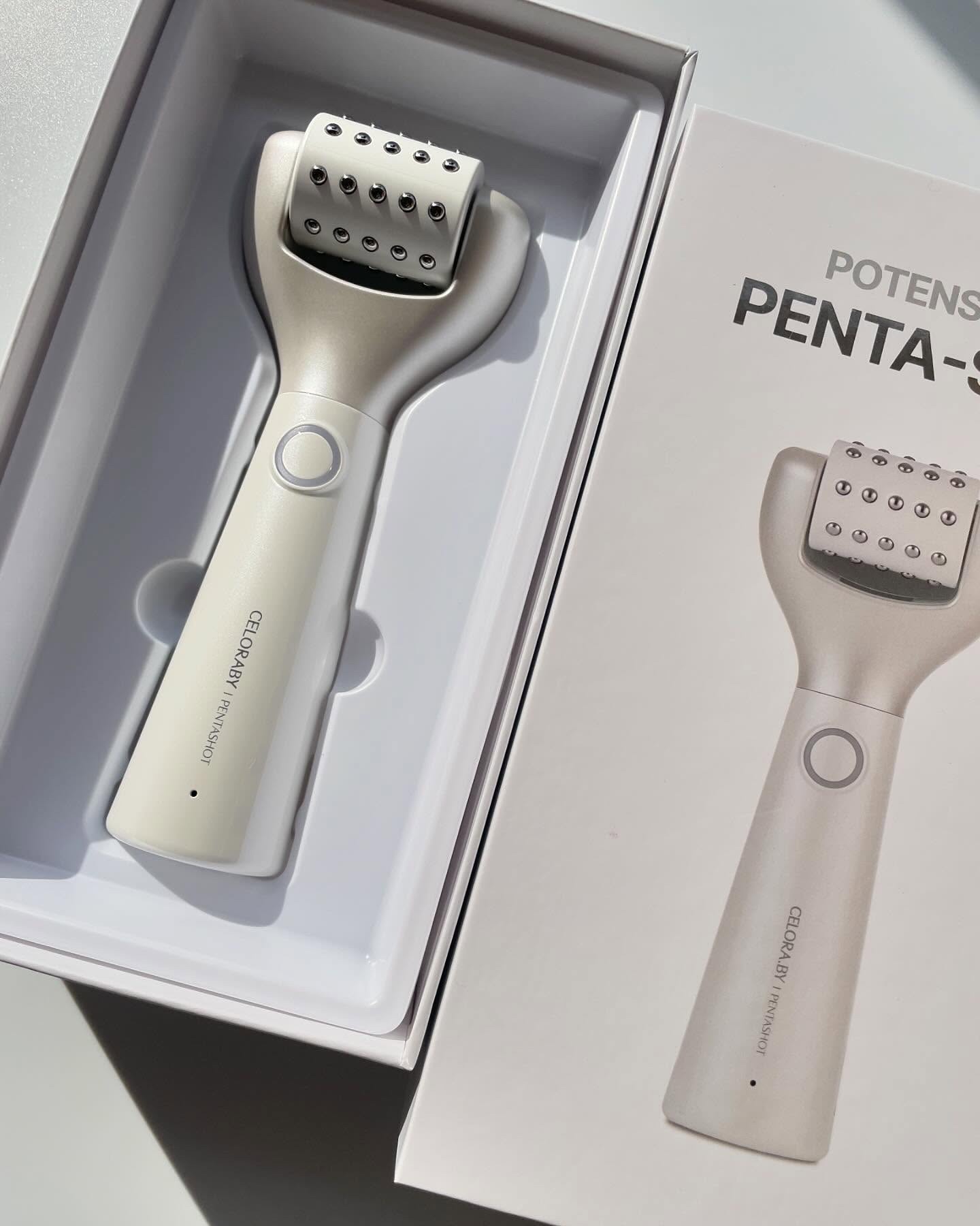 - ペンタショットは、韓国の美容のプロの施術の原理を利用し開発された、ホームケア・ビューティーデバイスです。瞬間的な微弱電流エネルギーにより、有用成分(基礎化粧品などの美容保湿成分)を角質層まで浸透させることで、キメを整え毛穴ケアをサポートする製品です。針を使用していないため、肌に優しい使い心地です。乾燥による毛穴悩みだけでなく普段の化粧ノリや、皮脂・整肌もケアできる美顔器です。