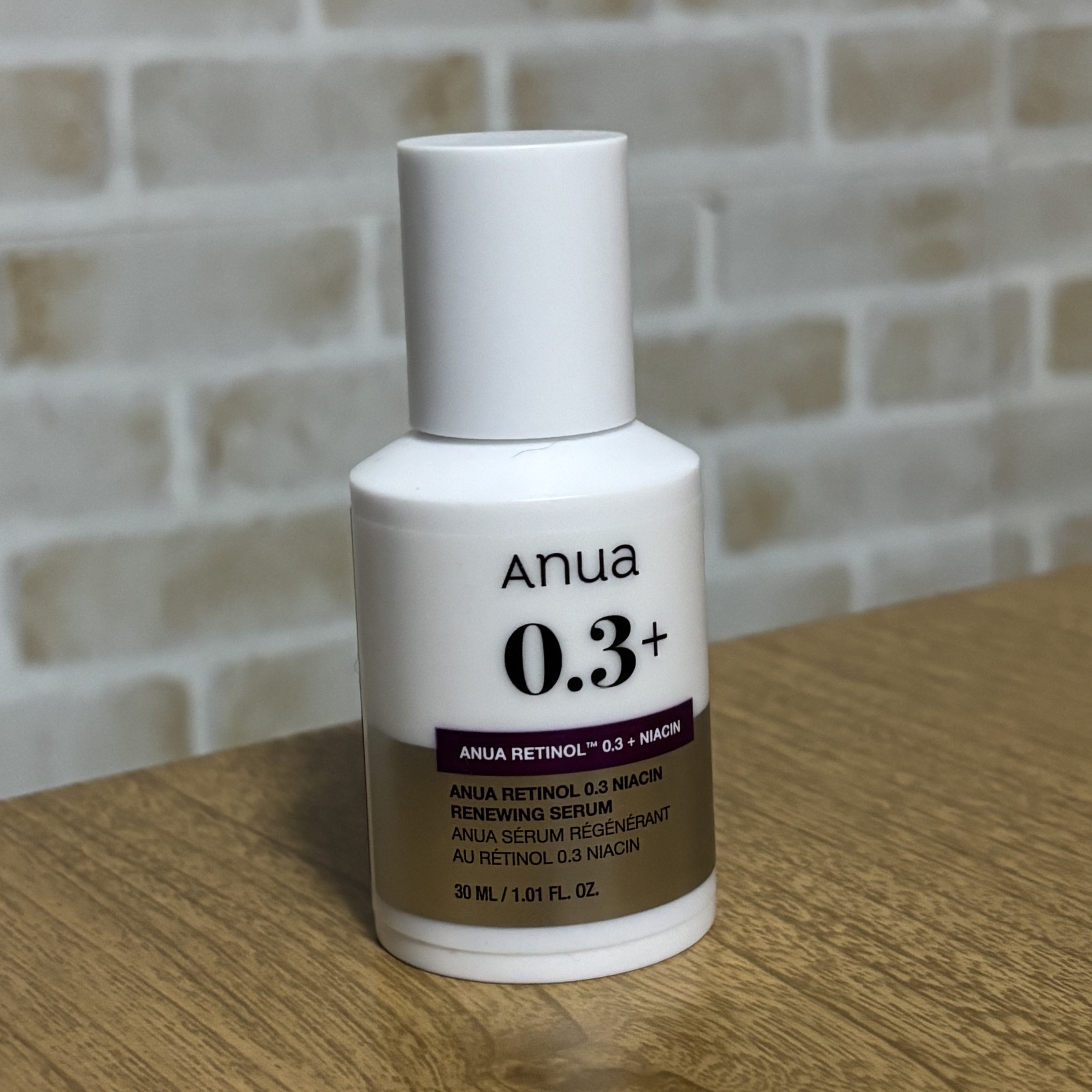 Anuaレチノール0.3+ナイアシンリニューイングセラム初心者でも使いやすいレチノール!レチノール0.3%配合でハリ、弾力ケアに特化。ナイアシンアミドで毛穴やくすみにも!肌のキメを整えて潤いもしっかりと感じました♡黄色いとろみのあるテクスチャ...