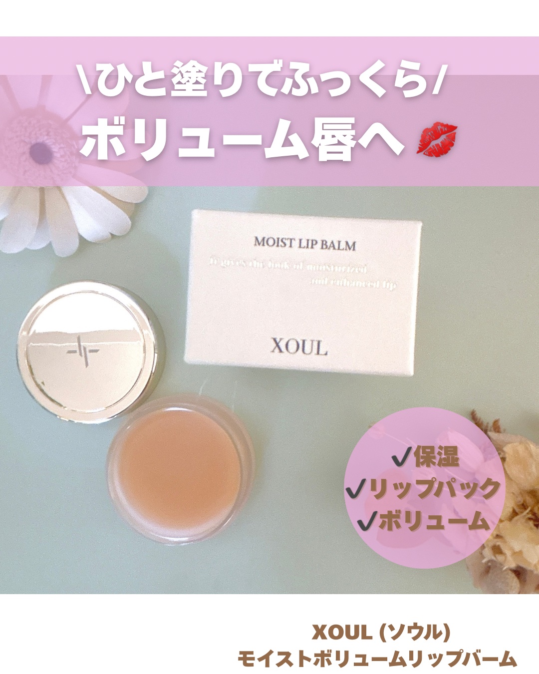 MimiBeautyからいただきました。XOULソウル@xoul_japanモイストリップバームベタつかず重たくないのにしっかりと保湿される感覚がありミントのような爽やかな香りがあります。寝る前はもちろん、日中の保湿やメイク前にもおす...