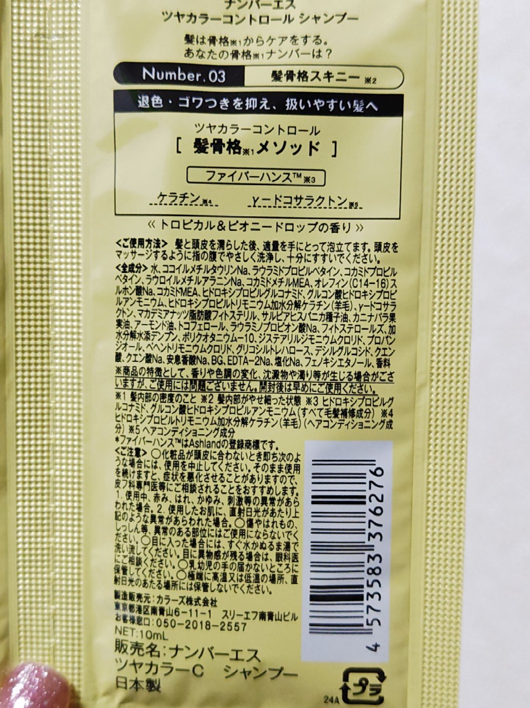 Number.S ツヤカラーコントロール シャンプー/ ヘアトリートメント | 1,540円 |