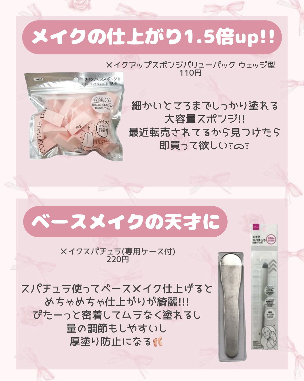 DAISO ハイソフト メイクアップスポンジ | 110円 |