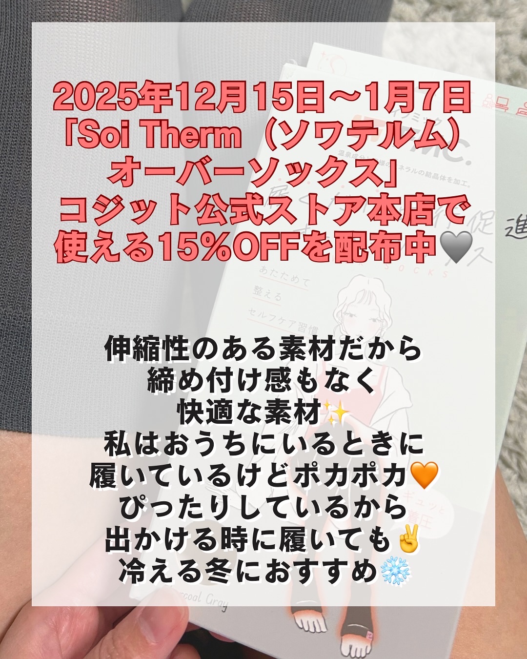 ããã¿ãå·ãã«å±¥ãã ãã±ã¢âŒïžãSoiThermïŒãœã¯ãã«ã ïŒãªãŒããŒãœãã¯ã¹ããå±¥ããŠå¯ãããã«ããŠã¿ãð€ãã®ãœãã¯ã¹ã¯æž©æŽ»ãšçå§ãåæã«ã§ããååâŒïžæž©æ³ã«ãå«ãŸãããšããããã©ã«çŽ æãã€ãããã¯ïŒIFMC.ïŒãã䜿ãããŠããŠããããããœ...