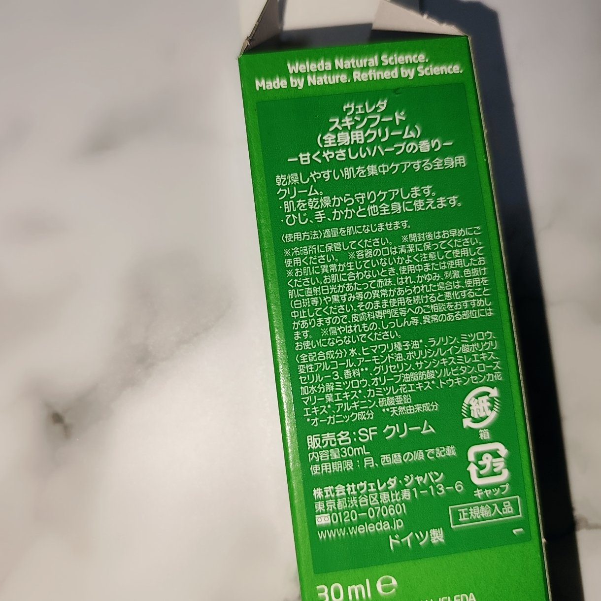 ヴェレダさまからいただきましたWELEDAスキンフード30mL1926年に発売されたロングセラーアイテム。肌荒れしやすい肌を深い潤いで包み込み、ふっくら柔らかく整える全身用集中保湿クリーム。チューブタイプで小さめのサイズ感なのでポーチに入れて...