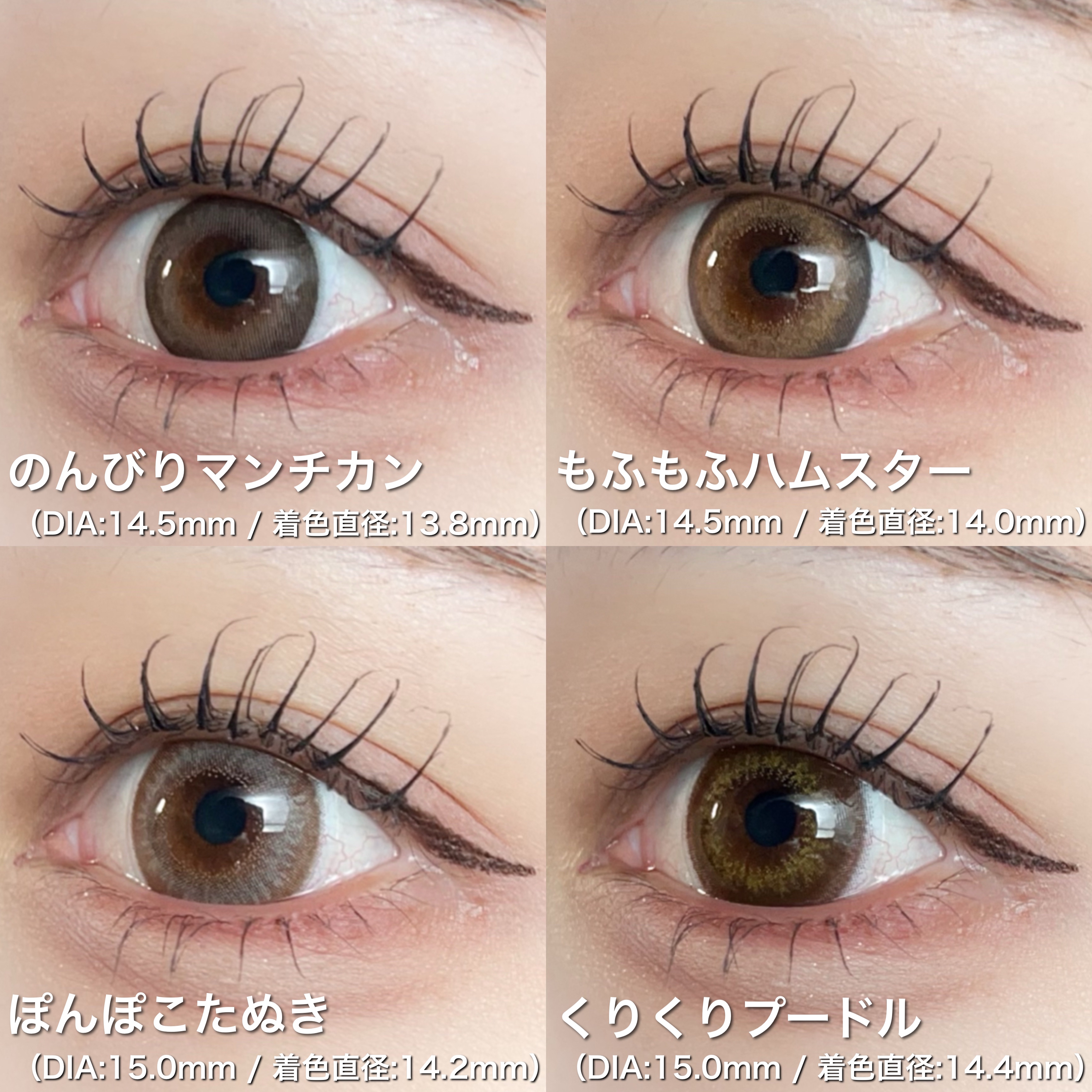 Flurrybycolorsパールライトブラウンぽんぽこたぬき¥1,485縁はぼんやりだけど盛れる色素薄い系になる色は少しグリーンぽいかな(ブラウンにグリーンが入っている感じ)大きさは大きめで目が大きく見せる縁はぼんやりしてるけどカラコン感は...