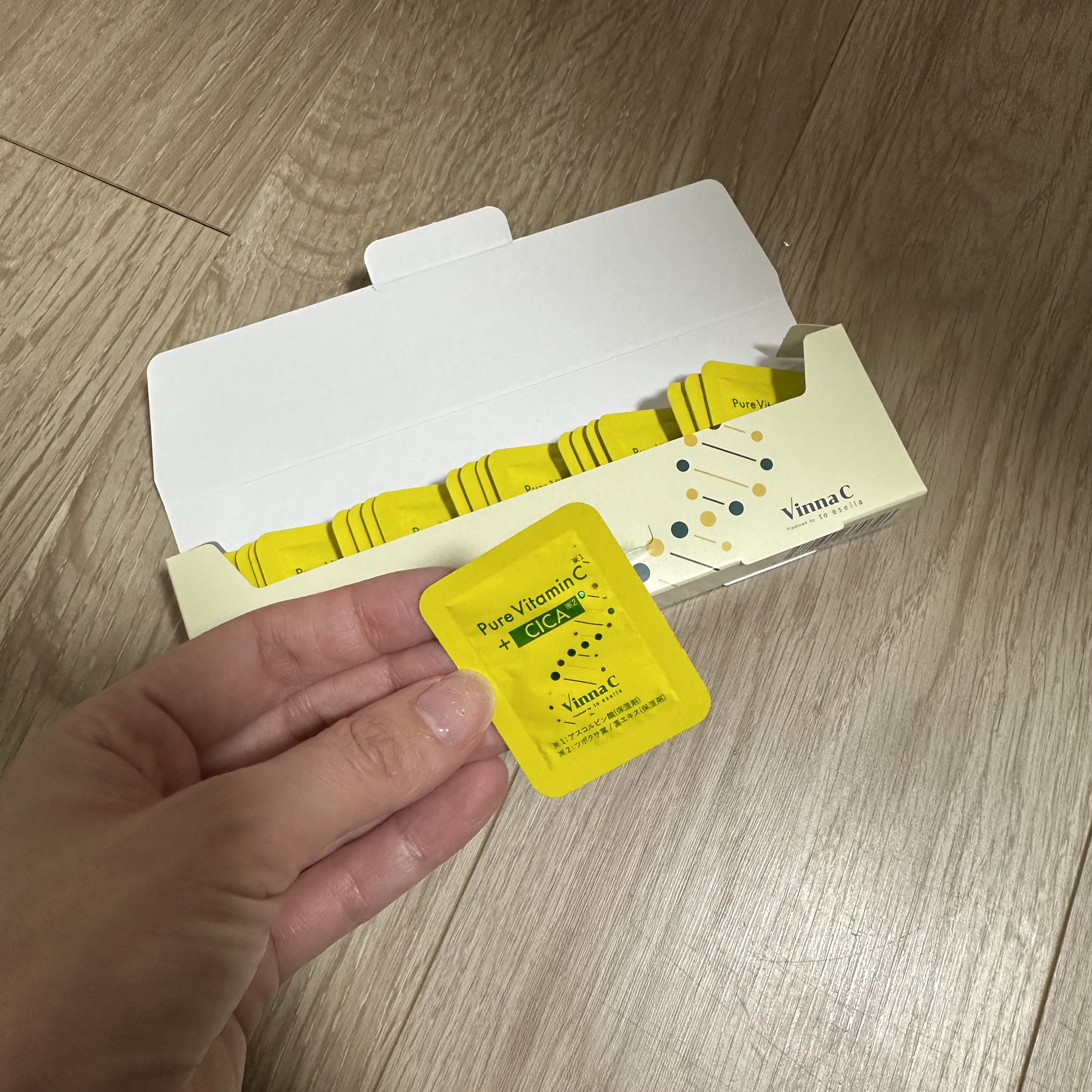 toesellaVinnaC🍋フレッシュ生ビタミンC美容液開けたてのフレッシュ感にこだわった、使い切り個包装のビタミンC美容液。毎回開封するたびにみずみずしく、さらっと肌になじむ心地よさ。🌿ナイアシンアミド、CICA、ドクダミなど整肌成分配合...