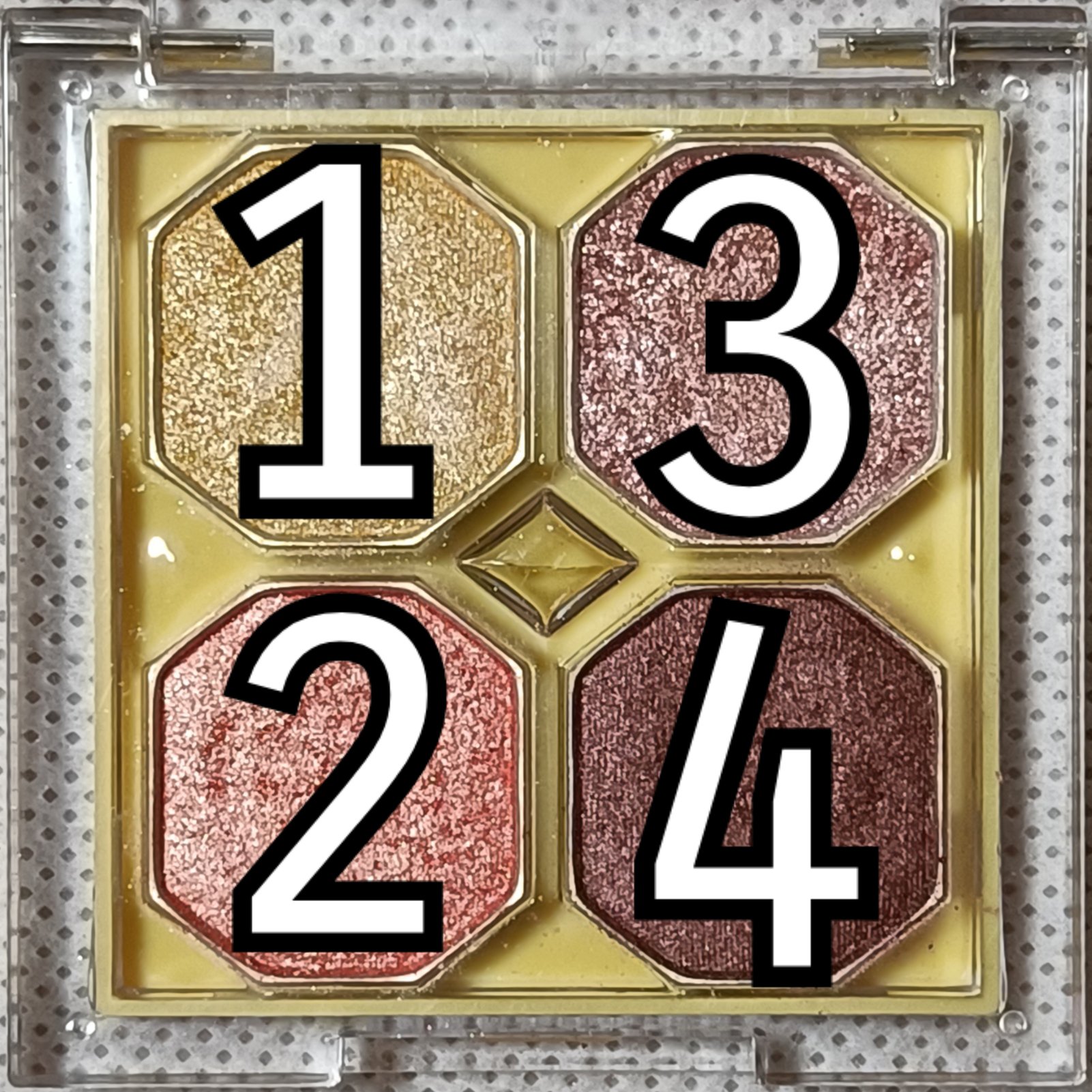 コレは、少し前に、たまたまドンキに行った際に、目に入り、少し気になり、テスター試してみたり、カラー展開を見たりしている内に、つい、欲しくなり、試しに、ひとつ購入してみました。 すると、まず思ったのは、しっとり感があり、粉がかなり細かく、繊細で、柔らかく、アイシャドウブラシで、少しアイシャドウの表面を滑らせただけで、かなりドバッ!と粉がついたため、かなり驚きました。 しかしながら、粉質が柔らかいため、ぼかしやすくもあり、アイメイクの失敗もしにくく、綺麗なグラデーションアイメイクが、誰でも簡単にできちゃうような、超優秀な、アイシャドウパレットだと思います。 さらに言いますと、何と、このアイシャドウパレットのお値段が、驚きの税込価格で550円なのです!