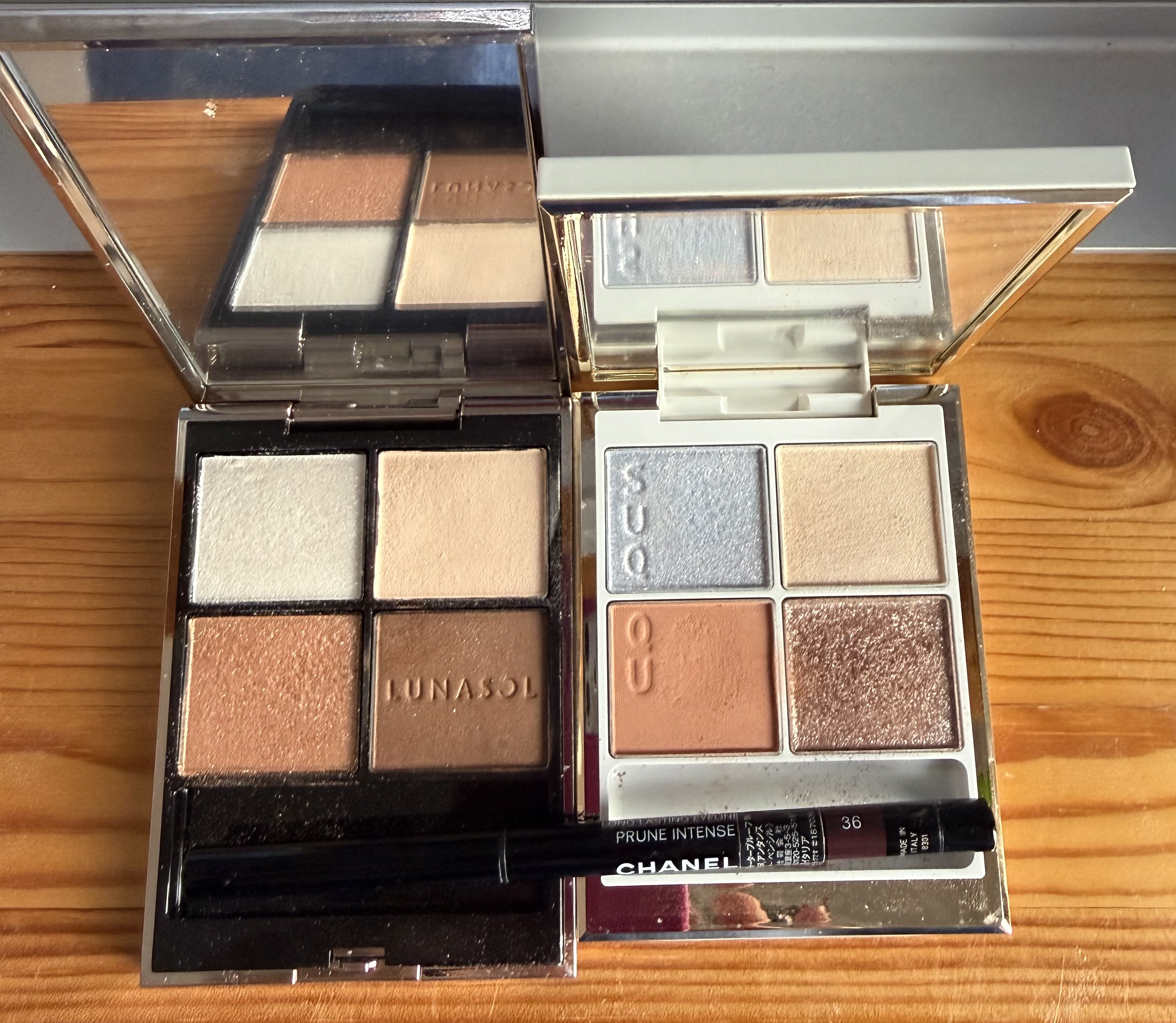 最近アイライナーを引いてから、濃い色から載せるやり方にハマっている。右はジバンシー15にブラックのアイライナー、左はスックなどとブラウンアイライナー。右の方がスッキリしてて、好きかな。スッキリした理由として、ブラックアイライナーもあるけど、マ...