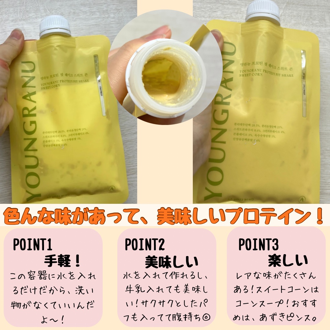 ESTHERFORMULAYOUNGRANU(ヨンラニュー)🤎*・\美味しい🩷プロテインシェイク/ヨンラニュープロテインフィットシェイク全6種穀物黒ごま,スイートコーン,ココアピスタチオ,よもぎラテ,あずきピンス▼ご提供@youngranu_...