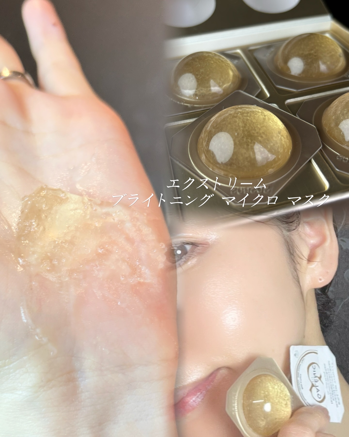 エクストリームブライトニングマイクロマスクゴールドキャビアのような微細カプセルがプチプチ弾ける感覚が楽しく、塗るだけで特別感のあるスペシャルケア💫香りも上品でリラックスでき、ふんわり軽いジェルがべたつかずに肌へ密着。集中ケアで内側からうるおい...