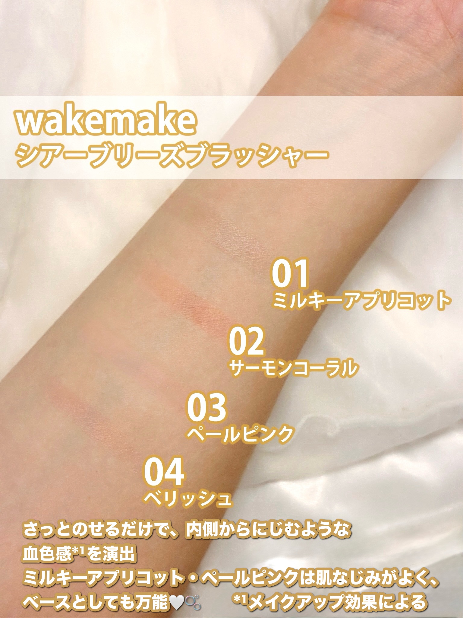 wakemakeのベースメイク!wakemake(ウェイクメイク) シームレスウェアクッション21Nバニラ22Nニュートラル22Pロージーニュートラル23ベージュ各2,890円(税込)シアーブリーズブラッシャー01ミルキーアプリコット02サー...