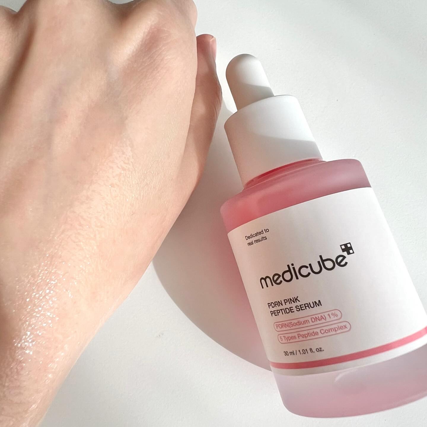 medicubePDRNピンクアンプル⎯⎯⎯⎯⎯⎯⎯⎯⎯⎯⎯⎯\跡ケア・ハリケアを同時に/高濃度のサーモン由来PDRN配合で、肌にうるおいを与え、弾むようなハリ感とツヤをサポートするアンプル。とろみのテクスチャーで肌なじみが良く、しっとりもっ...
