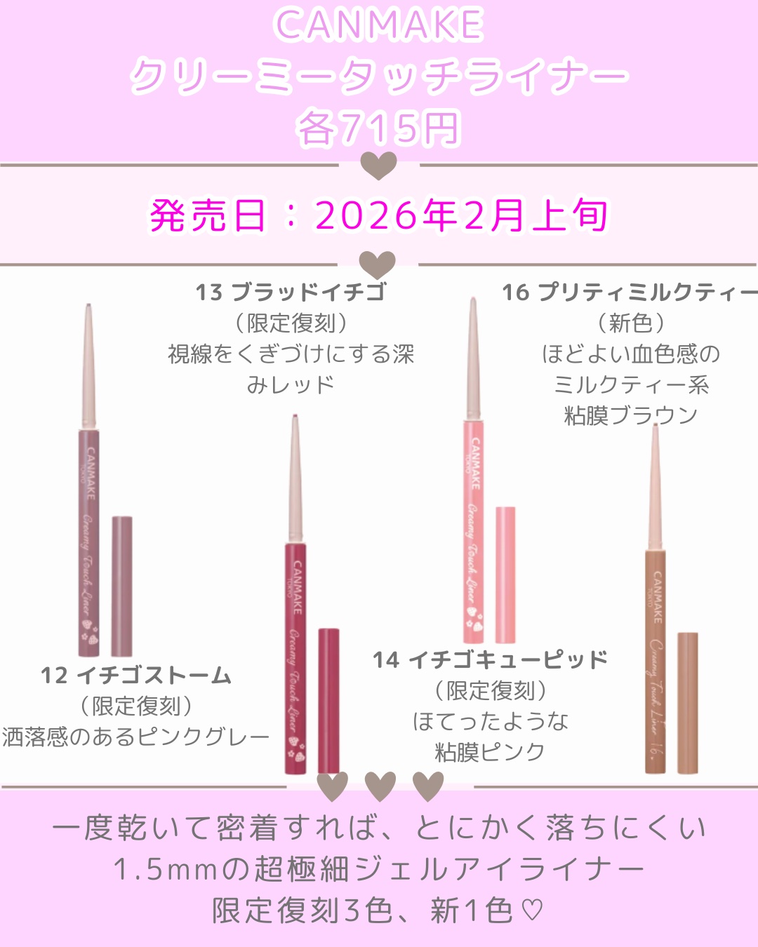 \キャンメイク2026年1月&2月発売新作コスメ紹介/こんにちは!ぱれちゃんです🎨💌@parechan_news今回はキャンメイクの1月&2月発売の新作コスメをご紹介します!⚠️アイテムによって予約日や発売日が異なるので要チェック!トゥインク...
