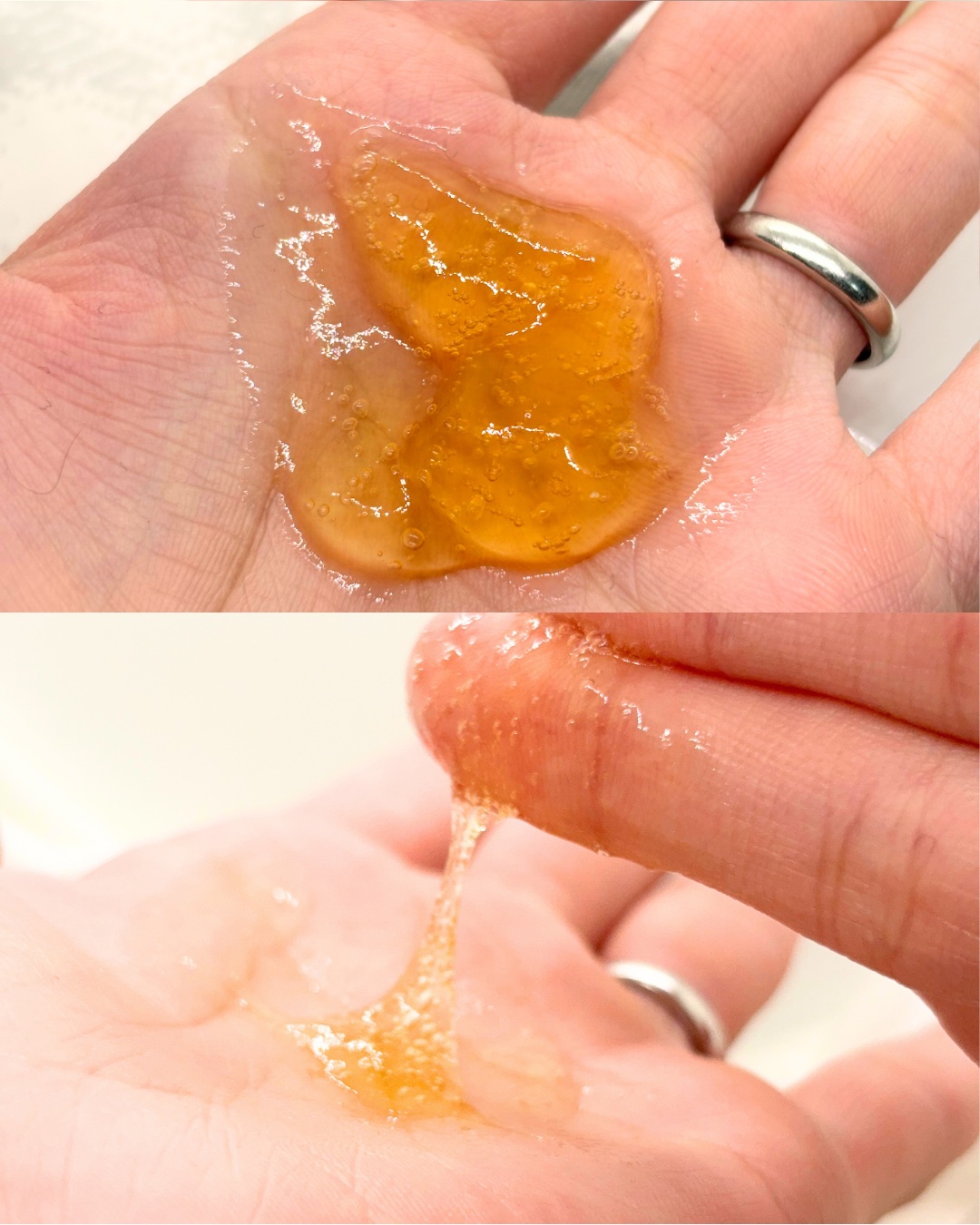 ぷるんとジェリーみたいな質感が可愛い💖 ポットの中のバームはぷにっとジェリーみたいな質感! サワーグミはピンクとオレンジの中間色で、ナチュラルに血色感をプラスできる🍑 ベタつかず軽いテクスチャーで使いやすい! リップに使うとほんのり透ける発色&ツヤが可愛いし、チークに使うとじゅわっと内側からにじむ血色感が出せる!