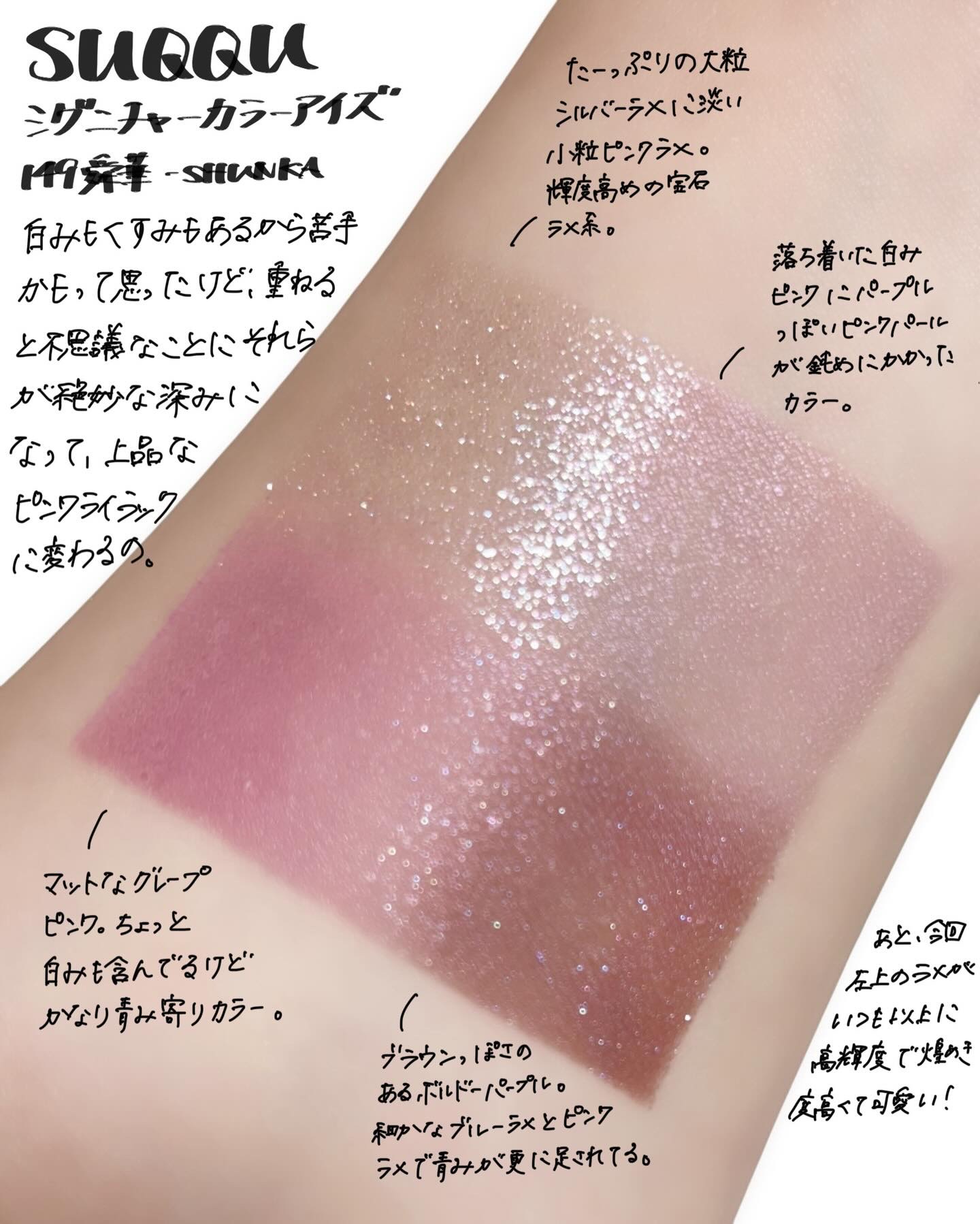 SUQQUのシグニチャーカラーアイズ149舜華が大人ピンクの中に微細ラメをたっぷり含んでて可愛いのに右下がちゃんと締めてくれて深み好きにも使いやすい🪄✨#SUQQU#メイクアップキット#舜華#シグニチャーカラーアイズ#デパコス#デパートコスメ...