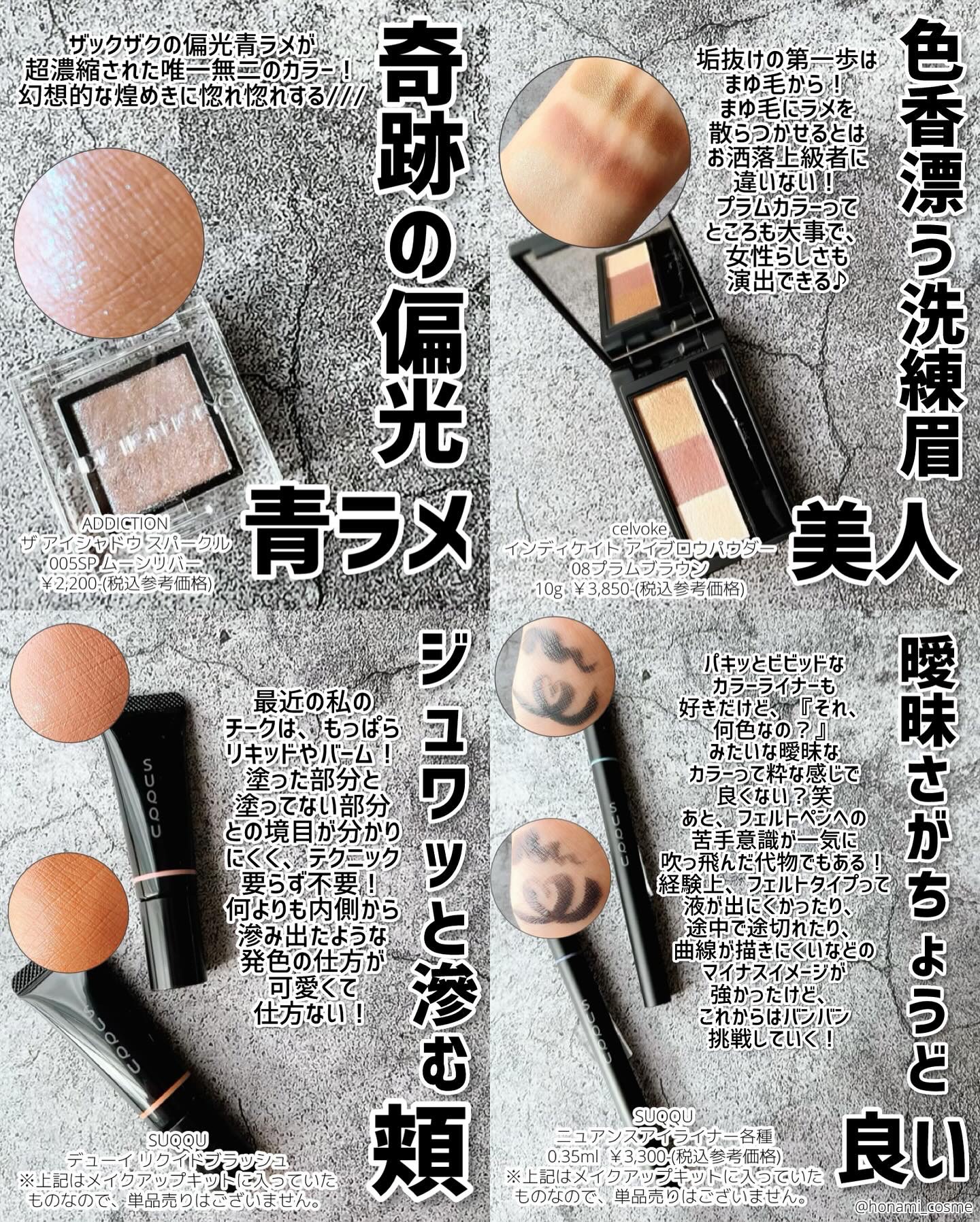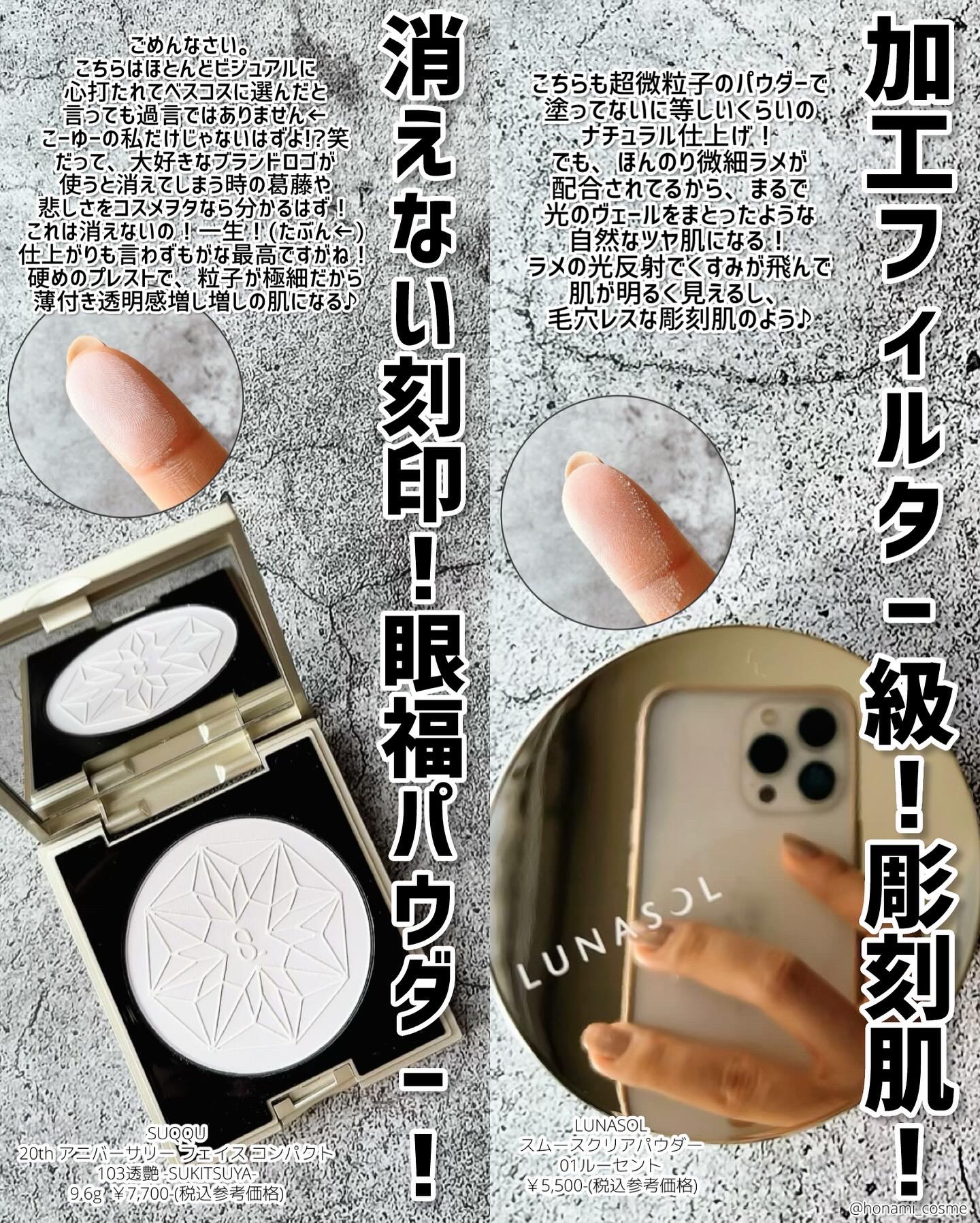 "デパコス(高価な物)だから良い、プチプラ(安価や物)だからイマイチ"そんなどこか拭いきれない先入観が本当に吹き飛ばされますっ!💨 冒頭で「激似」という表現をしましたが、良いところがそっくりなのはもちろん歓喜でしかないんですけど、全部そっくりそのままではなく、各々しか持ち得ない「個性」もしっかりあるのがすごく魅力的!✨ たくさんの人が自分の好みや気分、シーンやお悩みなどなどあらゆるパターンで大活躍してくれること間違いなしの6つのフェイスパウダーです🙌