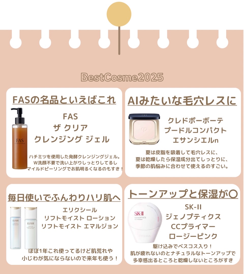 2025年ベストコスメ発売日関係なく、私が今年初めて出会ったものの中から、お気に入りをまとめたよ〜!!!(リニューアルや限定品を含む)使い切って捨てちゃったから集合写真撮れなかったものもある😭すでにリピート済みのものもあれば、絶対リピートした...