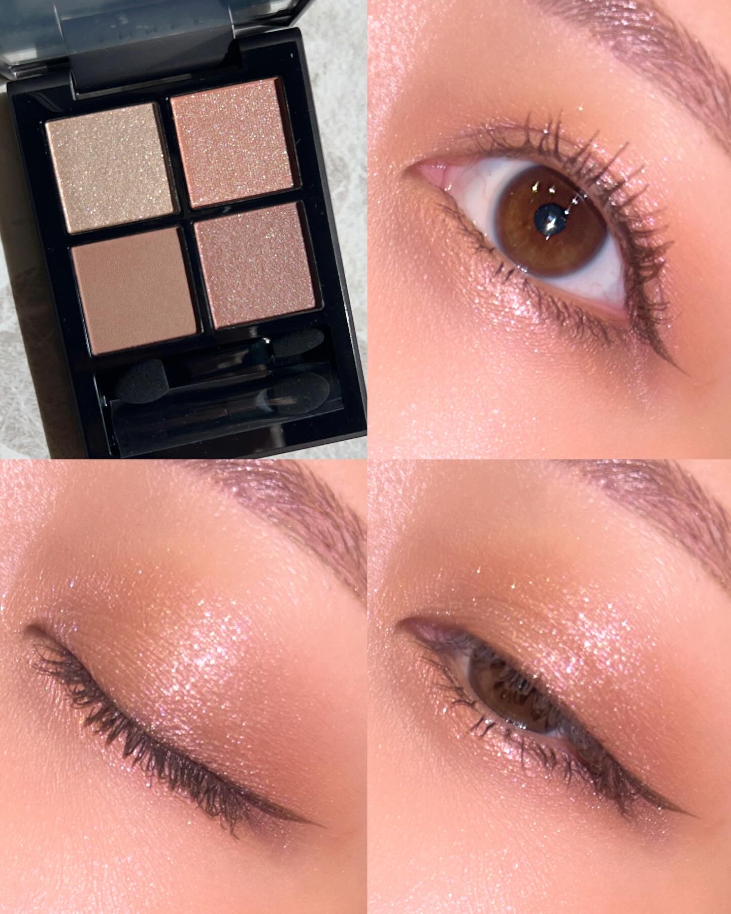 今回はいつも以上にしっとりした粉質✨ 4つとも可愛すぎて選べませんでした😂 ツヤ感強めなゴールドとブラウン。 めちゃくちゃ好きなやつです、はい。 右下はゴールドとシルバーのラメ✨ CHANELらしいプラムカラーのパレット。 発色も穏やかでふわっとしてるよ💐 今回はどれもしっとりした粉質だけどこれが一番しっとり感強めでクリーミーに感じたかな🤔 こっくりしたオレンジが可愛い🍊 これは落ち着いた配色…と思いきやキラッキラなベビーピンクのラメよ🫣 ベーシックなのに華やかにもなるこのラメにやられました🫠笑