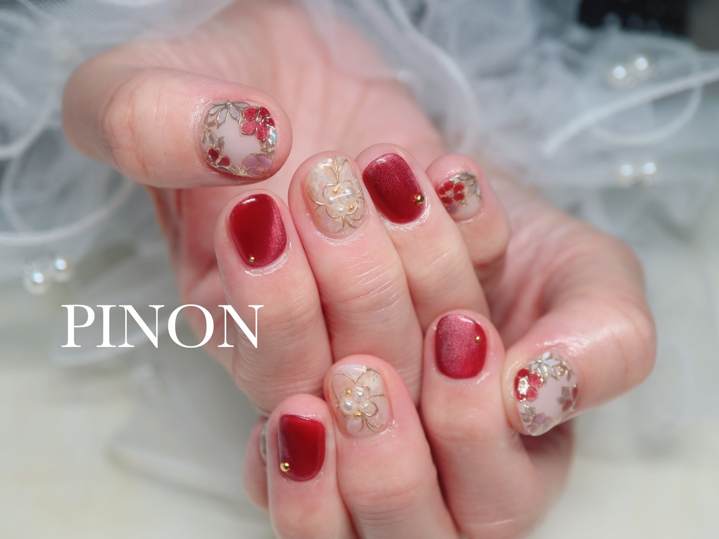 お色を変えて和装にも似合うお花柄に☺︎ 当店を見つけて下さりありがとうございました! #綾瀬ネイルサロン#綾瀬#都内ネイルサロン#ネイルデザイン#和柄ネイル#成人式ネイル#着物ネイル#冬ネイル#年末ネイル#赤ネイル#nailbook_fan