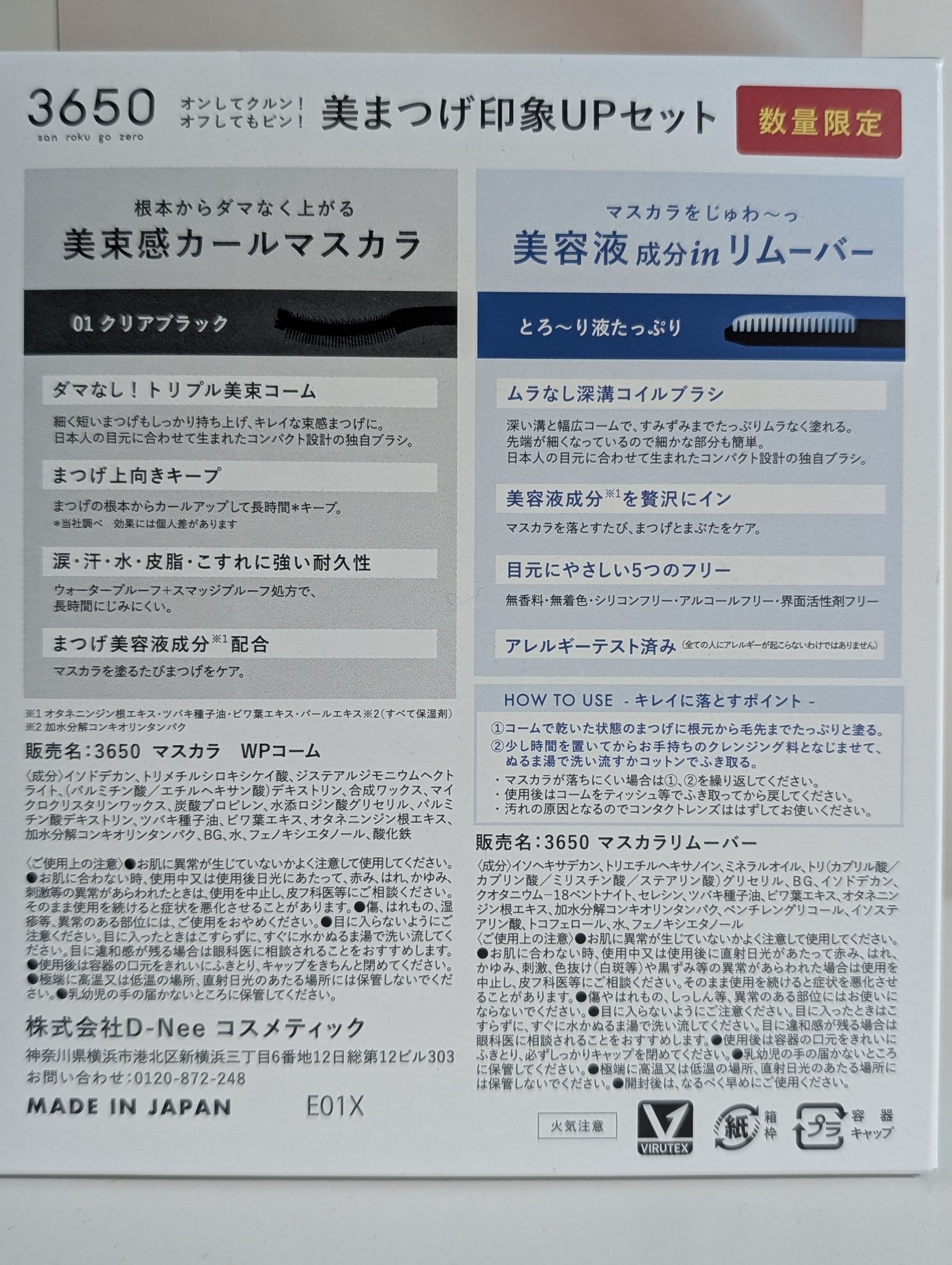 3650マスカラリムーバーはじめて使いました。マスカラは絶対ウォータープルーフ、でも最近落ちがわるい💦目の下に微妙に残ったり一発じゃ落ちない🤣専用のリムーバーで拭き取ったりしてたけど染みたり😭こちらのマスカラリムーバーは見た目はどうみてもマス...