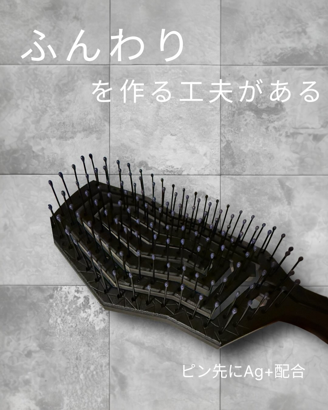 - 根元の絡まりをほどき、空気を味方にする事で簡単に髪の毛にボリューム感を出せる 根元のためのヘアブラシ 【グレイシア】 美しい大人髪をずっと楽しんでいただきたい。 ボリュームがでない、白髪を隠したいなどネガティブな悩みにポジティブに向き合ってくれる、”かっこいい” ”高級感”のあるヘアケアブランドが【グレイシア】です。 サロン専売品メーカーの品質と美の若見せアドバイザーの監修により、【若見せ】をテーマにした製品を追求しています。 ①こだわりの2重らせん構造 理想のボリューム感を実現する為にさまざまな形状を試した結果、完成したのが2重らせん構造でした。 2重らせん構造の特徴は2つで 1,本体と毛が柔らかい構造の為に根本からブラッシングでき、からまりをほぐします。 根本からブラッシングを行おうとしても本体や毛が固いと頭皮が気になりブラッシングできません。 本体と毛が柔らかい形状の為に頭皮を覆うようにブラシが変形し、頭皮を気にせず、頭皮全面を覆うように根本からブラッシングができ、髪の絡まりをほぐします。 2,空気を味方にすることで根本から自然なボリューム感を出せます。 髪の毛の根本から自然なふんわりしたボリューム感を出す為には、考えた結果空気を味方にする事でした。 2重らせん構造はブラシの毛の周りに空洞がある事で空気を通し、ふんわり自然なボリューム感を出す事ができます。 空気を通す事で、ミストを乾きやすくするので、スタイリングが時短になります。 ②ブラシの面が大きい ブラシの面が小さいと何度も何度も髪をブラッシングしなければならず手間がかかります。ブラシの面を大きくしているので簡単に髪の毛全体をブラッシングできます。 ③使いやすい持ち手 しっかり握れるような形状にする事でブラッシングが楽にできます。 ④ピン先に銀イオンを練りこみ ピン先に銀イオンを練りこんでいます。 ⑤環境に配慮した100%リサイクルPP使用