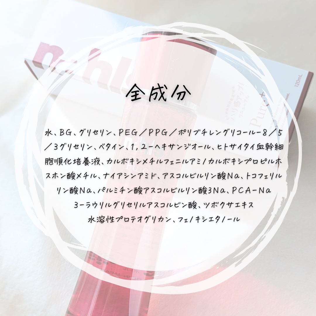 - 研究を重ねて見出された、整肌成分「ナールスゲン」を推奨*1濃度で配合したエイジングケア*2化粧水。ナールスゲンの力で肌のハリや弾力をサポート。ヒト幹細胞培養液(上清液)*3、ナイアシンアミド*3、APPS*3、プロテオグリカン*3、セラミドプロモーター*3、CICA(ツボクサエキス)*3、ビタミンE誘導体*3配合で、健やかで若々しい印象の素肌に導きます。また、独自の製造技術で界面活性剤完全フリーを実現しました。 *1原料メーカー推奨 *2年齢に応じたケア *3保湿成分