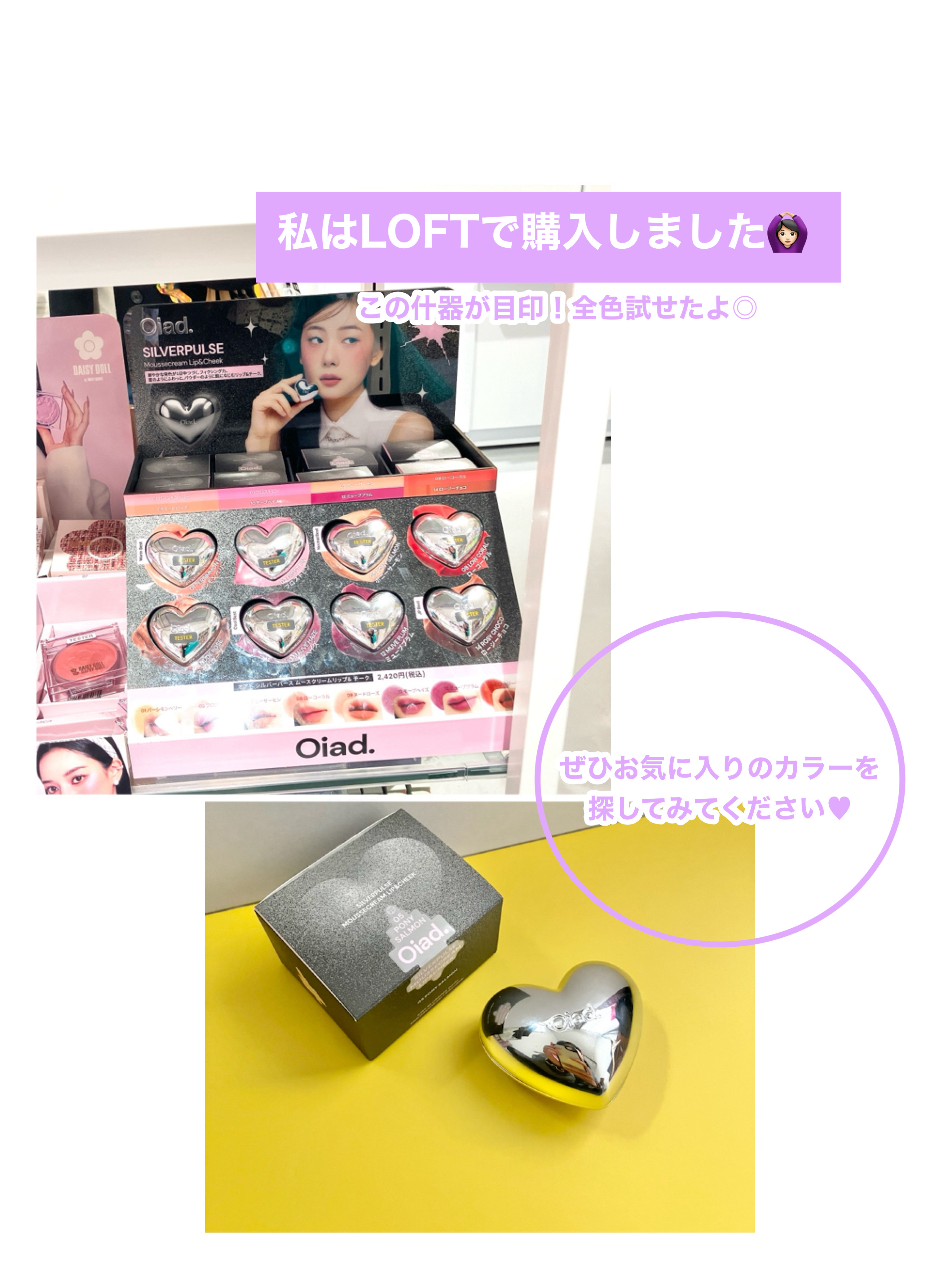 Oiad.オアドシルバーバスムースクリームリップ&Oiad.オアドシルバーバスムースクリームリップ&チーク「Oiad.(オアド)」のハート型ムースクリーム&チーク。超人気のアイテムがついにオフラインで購入可能!渋谷のロフトで購入したよ🩷プライ...