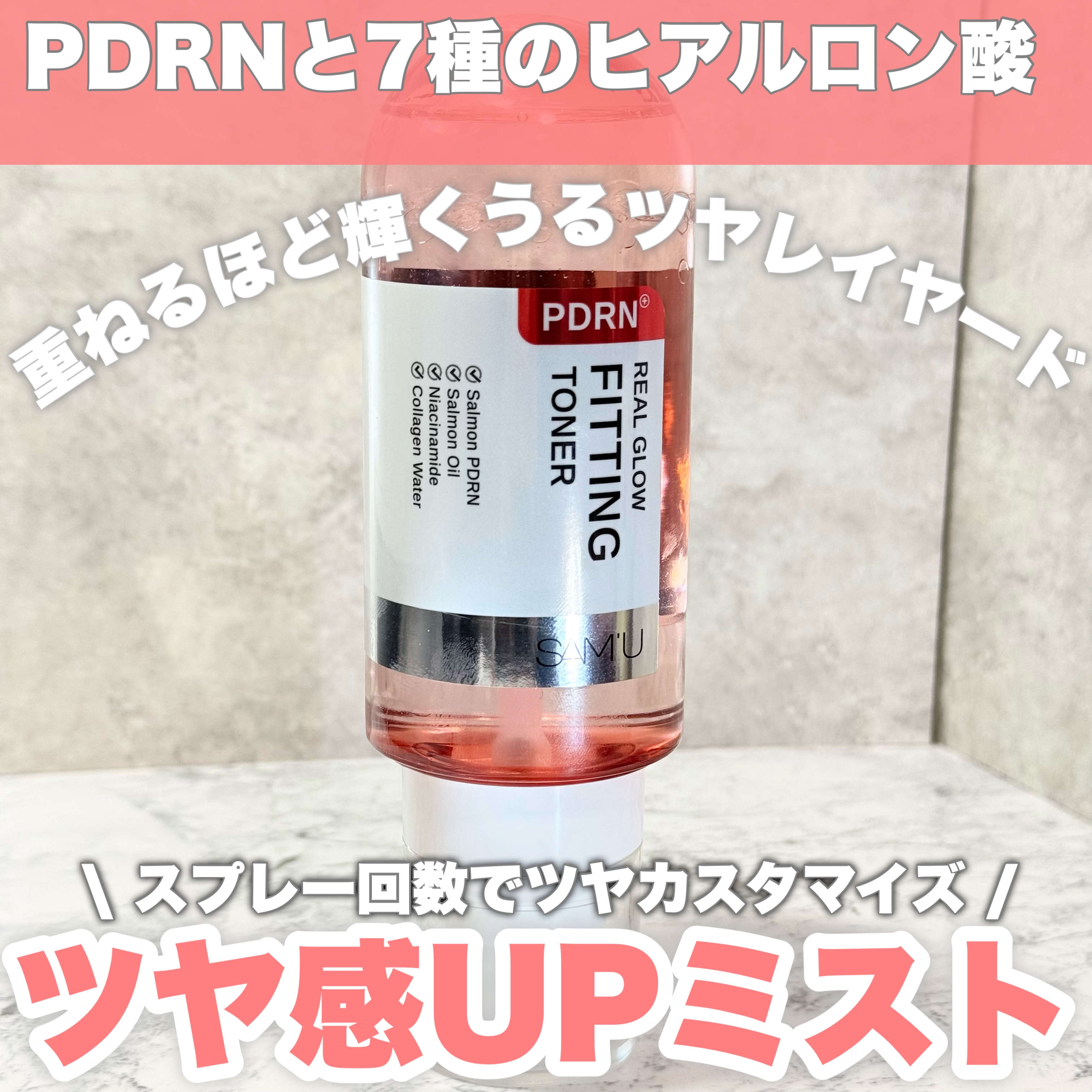 \内側から溢れるようなツヤ肌へ/ ▫️SAM'Uサミュ PDRNリアルグロウフィッティングトナーリポーソーム化したサーモン由来PDRN×サーモンオイルを配合肌本来のツヤを引き出す、ミストタイプの化粧水サジー水・7種のヒアルロ...