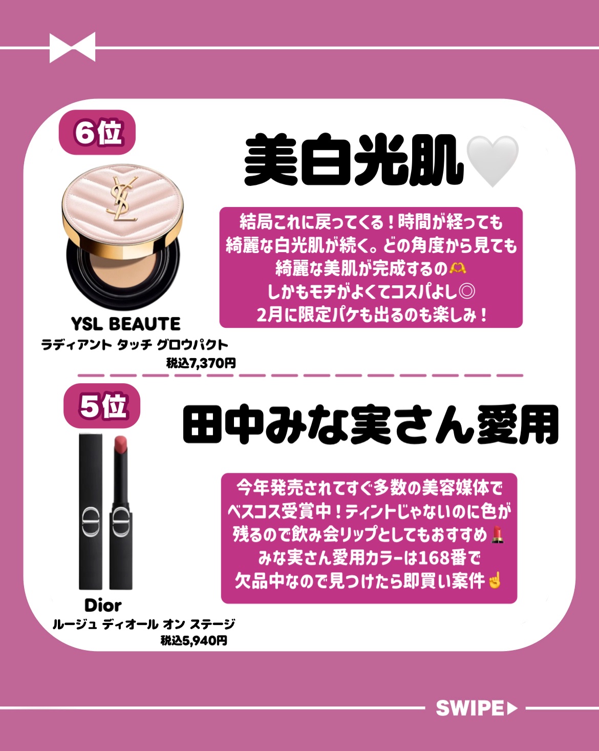 | 口紅・グロス・リップライナーランキング第3位 | 軽やかで魅力的な艶感をプラス。超絶モテリップだね! | 詳細を見る | |