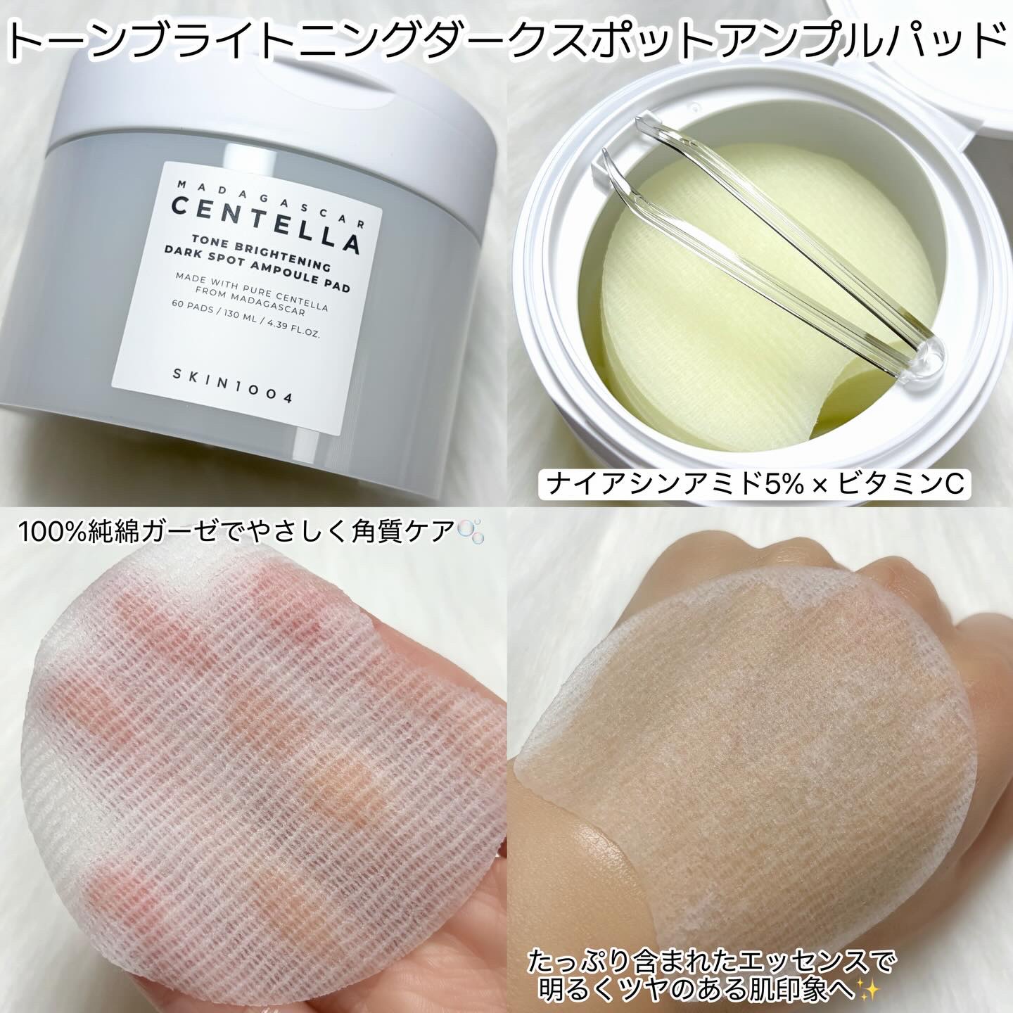 SKIN1004トーンブライトニング!📍トーンブライトニングダークスポットアンプルパッドざらざらしている面は、拭き取り角質ケアとして。つるっとしている面は、パックで集中ケアとして使えるよ!📍トーンブライトニングブースティングトナーブライトニン...
