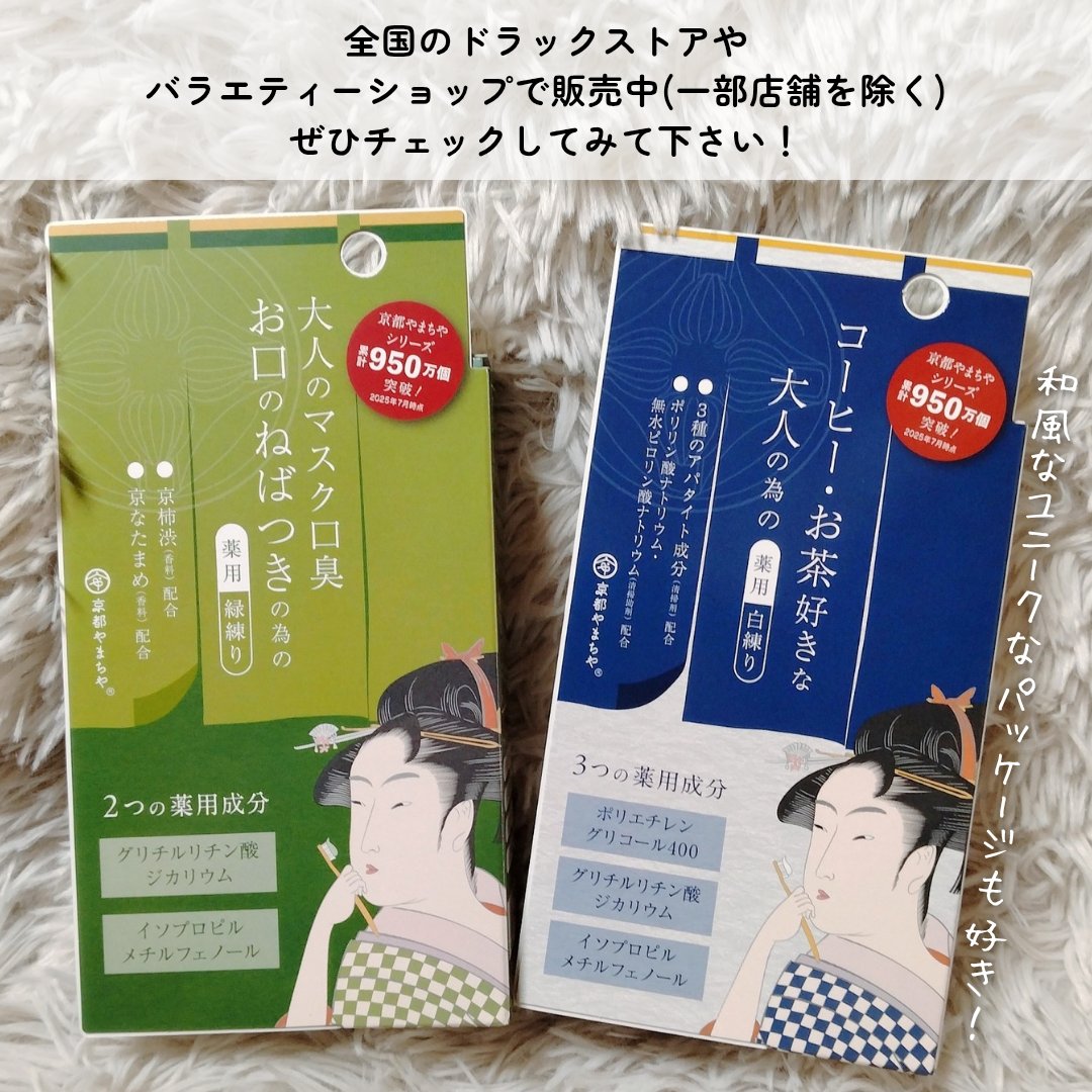\塩抹茶味🧂🍵/京都やまちや・京の抹茶はみがき薬用緑練り・京の抹茶はみがき薬用白練り容量:各60g価格:1,738円(税込)京都やまちや監修の新ブランド「京の抹茶はみがき」が2025年12月1日新発売❣️京都宇治抹茶エキス*¹使用。💚薬用緑練...