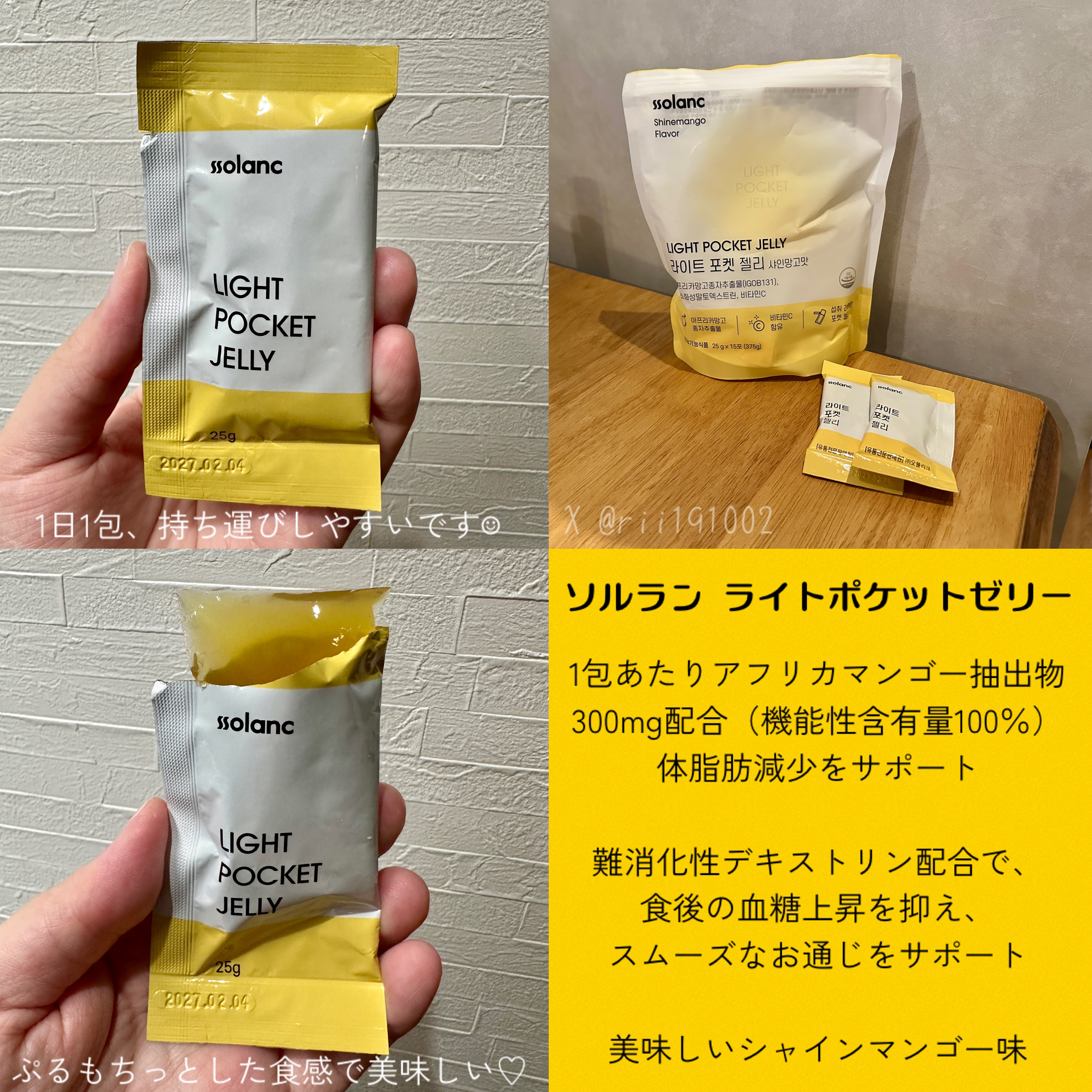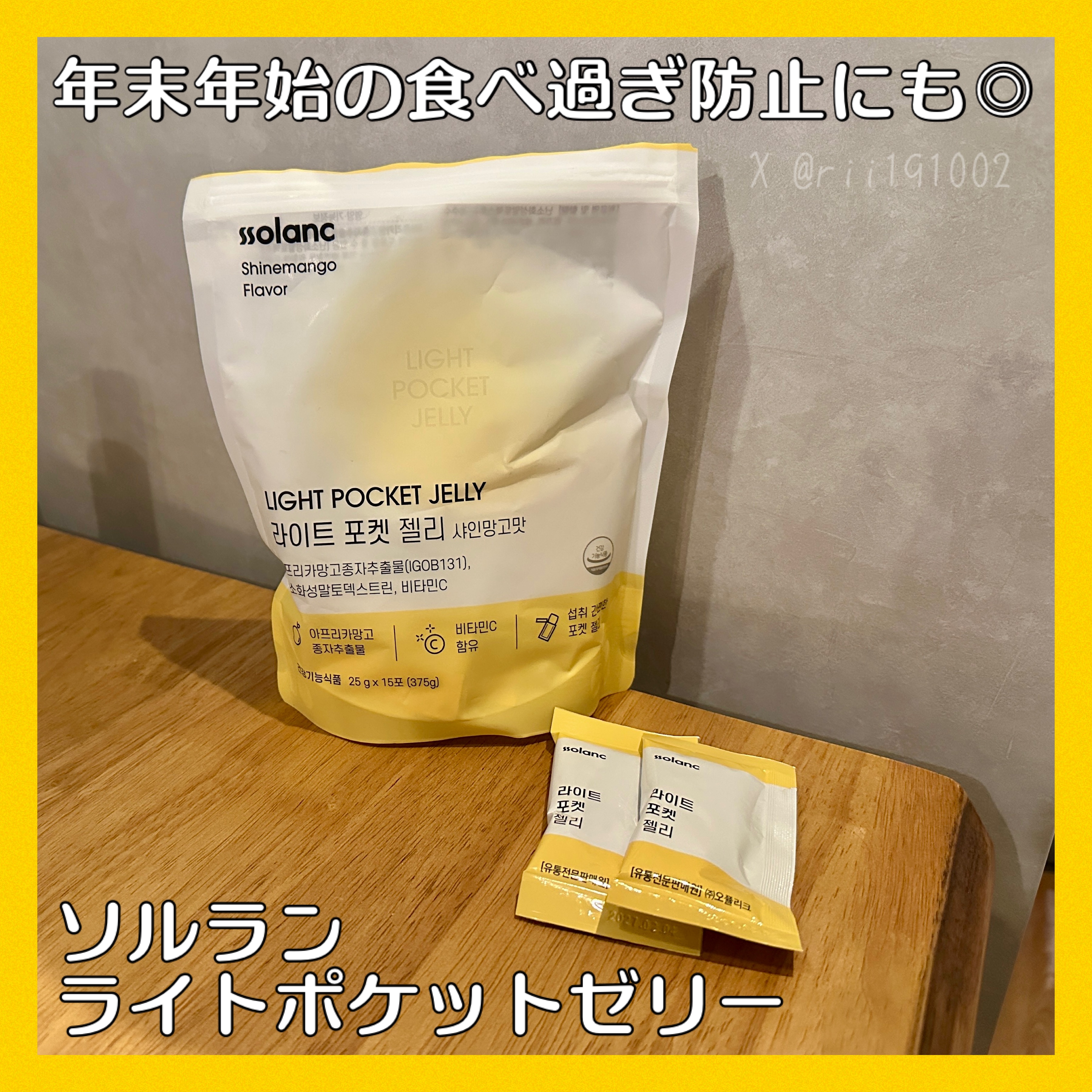 #PRソルランライトポケットゼリーシャインマンゴー味のゼリー🥭🤍ビタミンC、難消化性デキストリン、アフリカマンゴー種子エキスなどを配合で体脂肪減少をサポート💪🔥ナタデココ入り🥥ぷるぷるもっちり、固めの食感で食べ応えがあるのも嬉しい♡凍らせる...