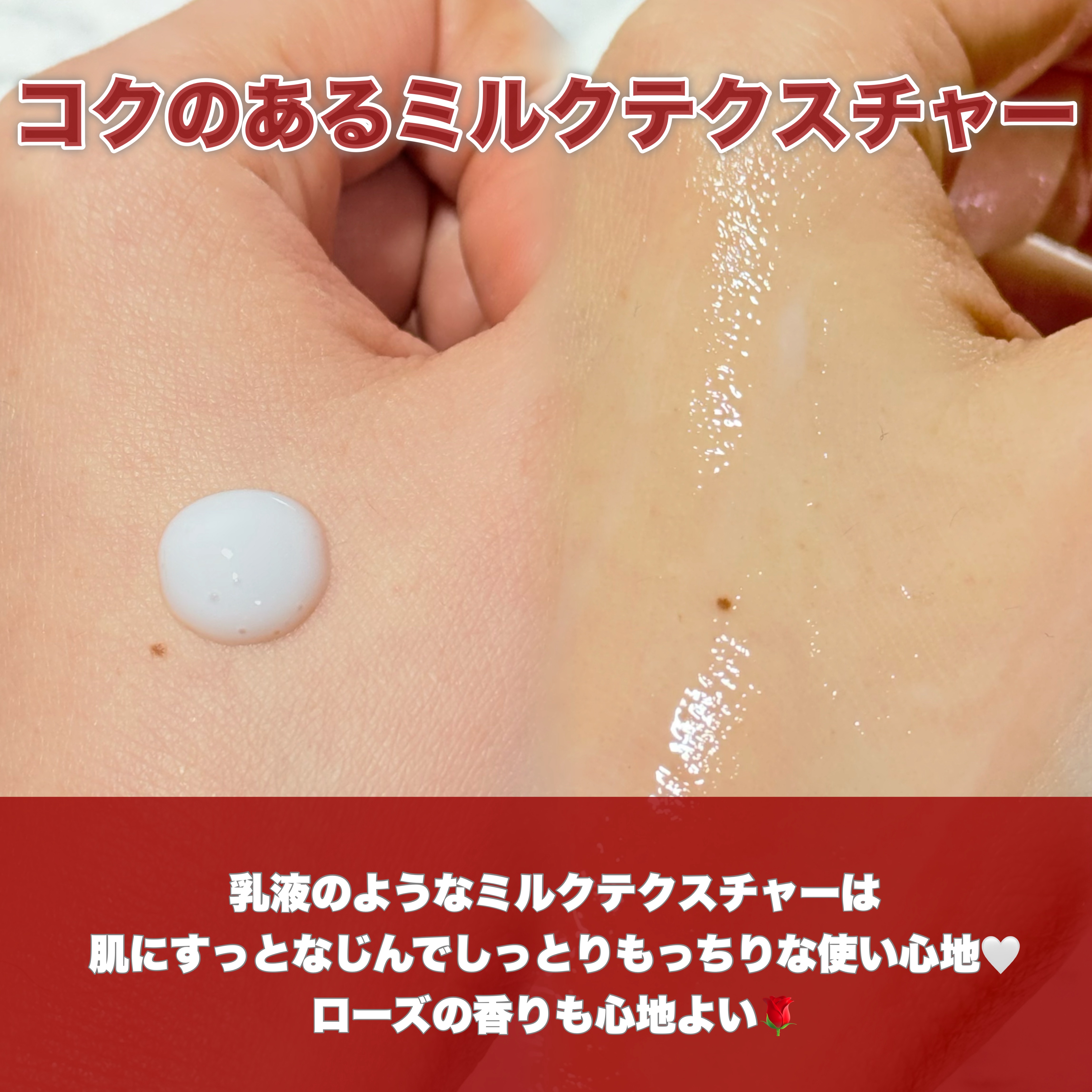 - 洗顔後、スキンケアの最初に使う導入美容液。 みずみずしく清らかなミルクエッセンスが、肌にすばやくなじみ浸透*。 肌のすみずみ*を豊潤なうるおいとハリで満たし、やわらかでイキイキとした肌へ。 ■主な成分 浸透型エクソソーム、サーチュライザーS6(肌にハリと弾力を与える保湿成分) アクアスタックコンプレックス(肌にうるおいとツヤを与える保湿成分) プルーン分解物、アミノセラミド(角質柔軟・浸透*補助成分) 水密ブースト処方(美容保湿成分を肌に届ける処方) 弱酸性、無着色、無鉱物油、パラベンフリー、アルコールフリー アレルギーテスト済み(すべての方にアレルギーが起きないわけではありません) 肌にうるおいを与えて乾燥による小ジワを目立たなくし※、ハリ・弾力に満ちた肌を保ちます。 ※効能評価試験済み *角層まで ダマスクローズを基調としたエレガントで深みのある香り 2025年10月1日(水)から@cosme TOKYO、@cosme NAGOYA、@cosme OSAKAで先行販売