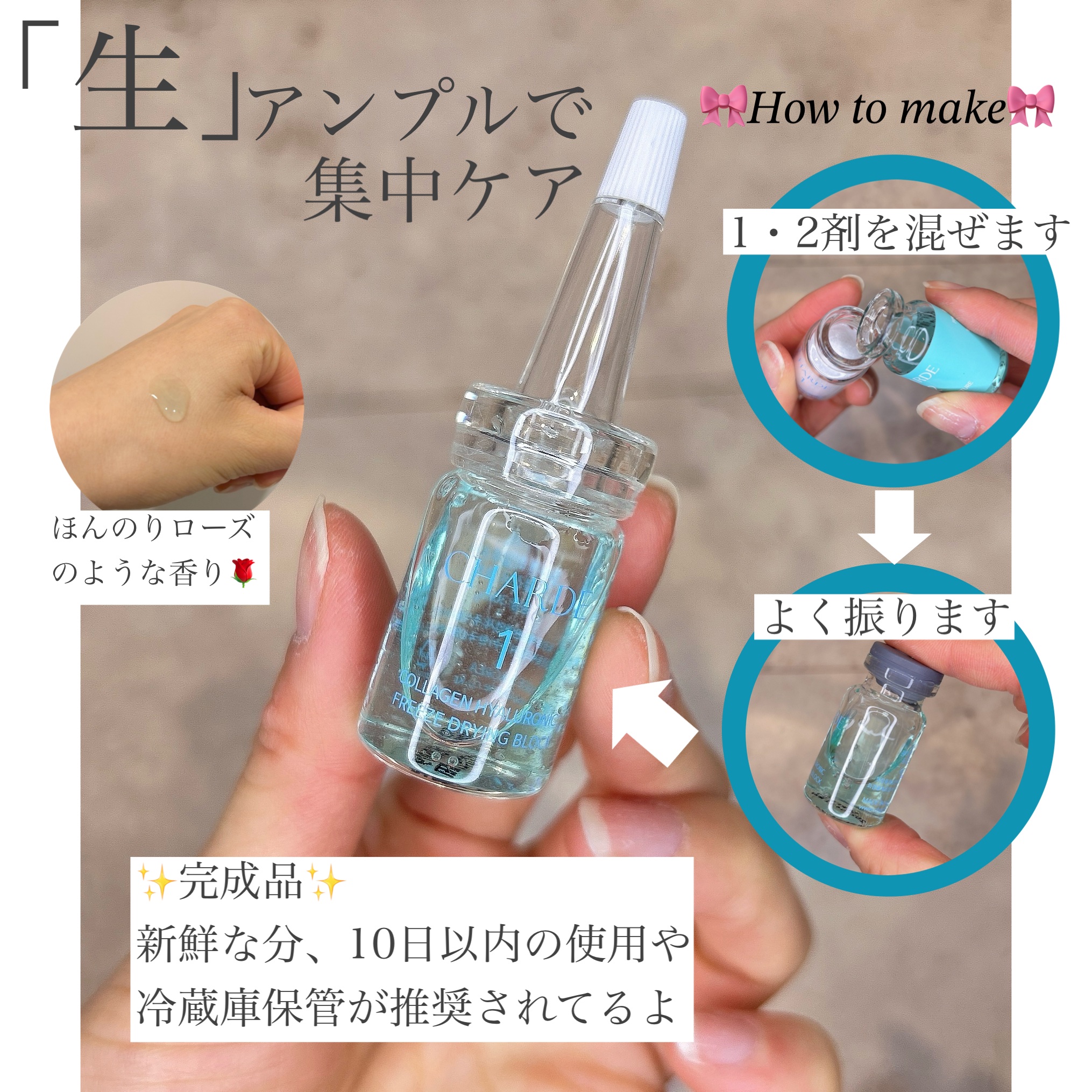 #PR|@charde_jp🔖CHARDEクラウドアンプル1weekキット\使用期限10日間の生美容液/1剤···▸ヒアルロン酸と低分子コラーゲンフリーズドライ処理で新鮮な状態に!2剤···▸成長因子を高濃度で含む臍帯血幹細胞培養...