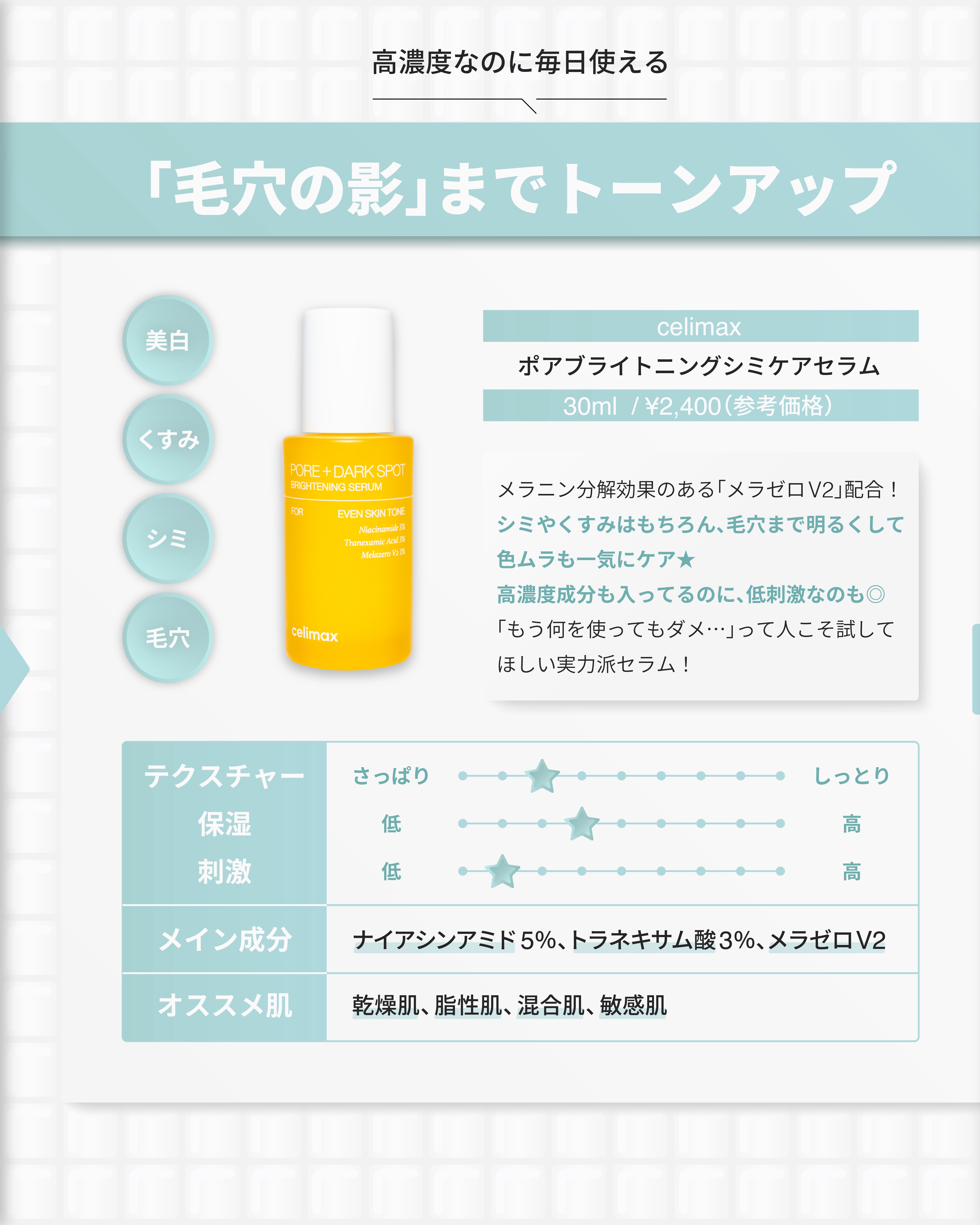 | 美容液ランキング第48位 | べたつかず肌にさらっとなじむ!水分たっぷりなみずみずしいテクスチャー | 詳細を見る | |