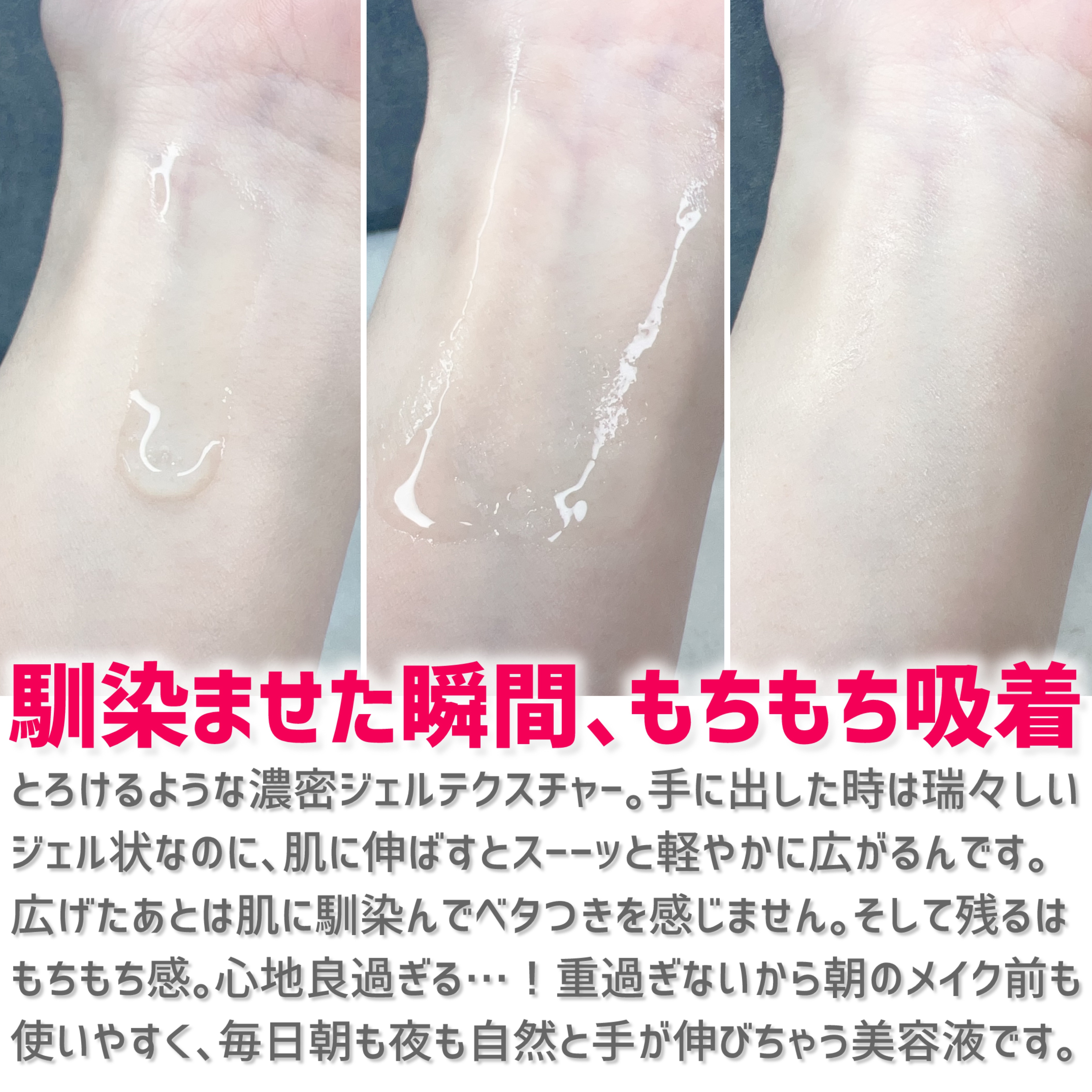 | とろみ感のあるみずみずしいテクスチャーでした。肌にすっとなじむ感じで使いやすいです。 | 詳細を見る | |||