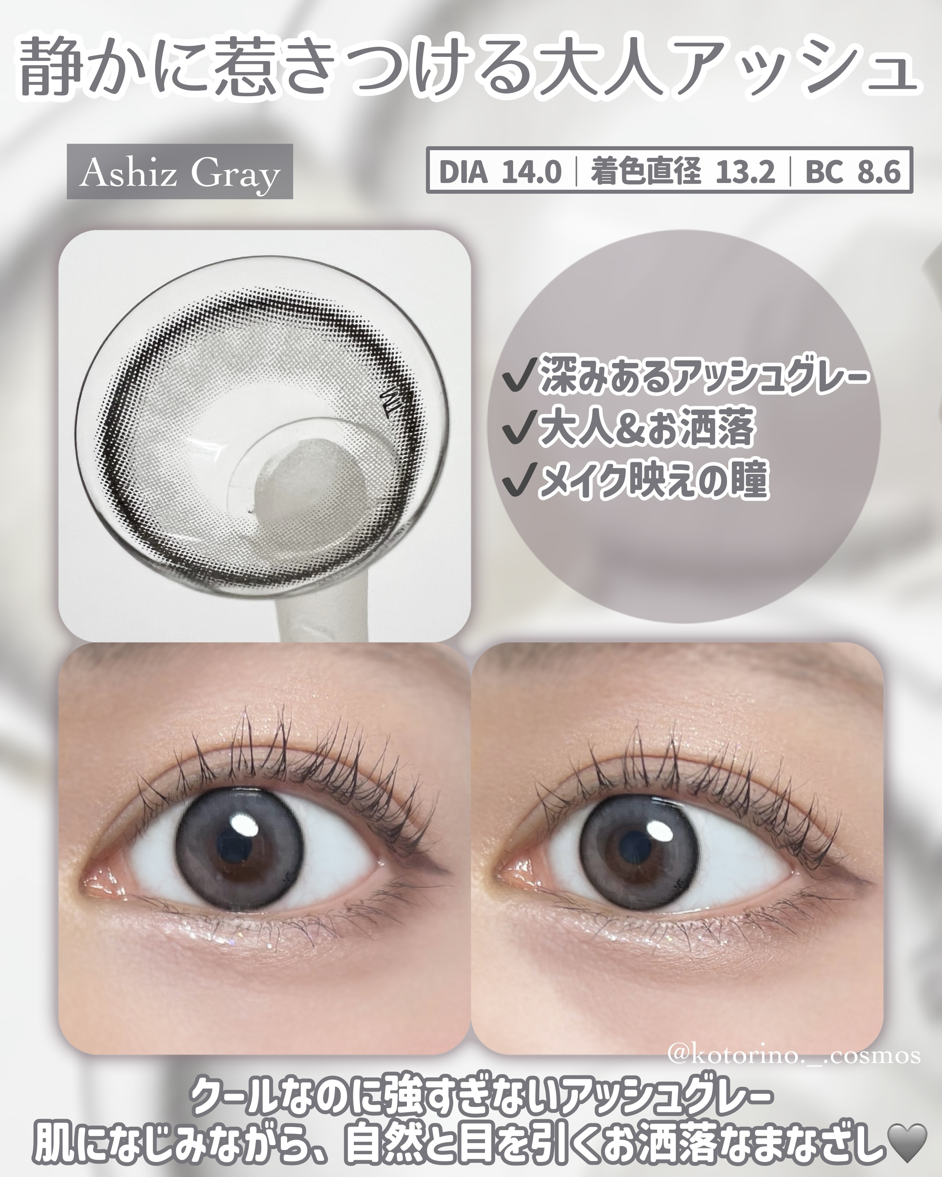 \🐻❄️静かに、でも印象的にアッシュズ(ASHIZ)/「TORICA(トリカ)」から、【アッシュズ】シリーズの 新色カラコンのご紹介です💁🏻♀️💕11月に新しく発売される新商品「アッシーズ」は、どんな肌色や瞳の色にも自然に馴染...