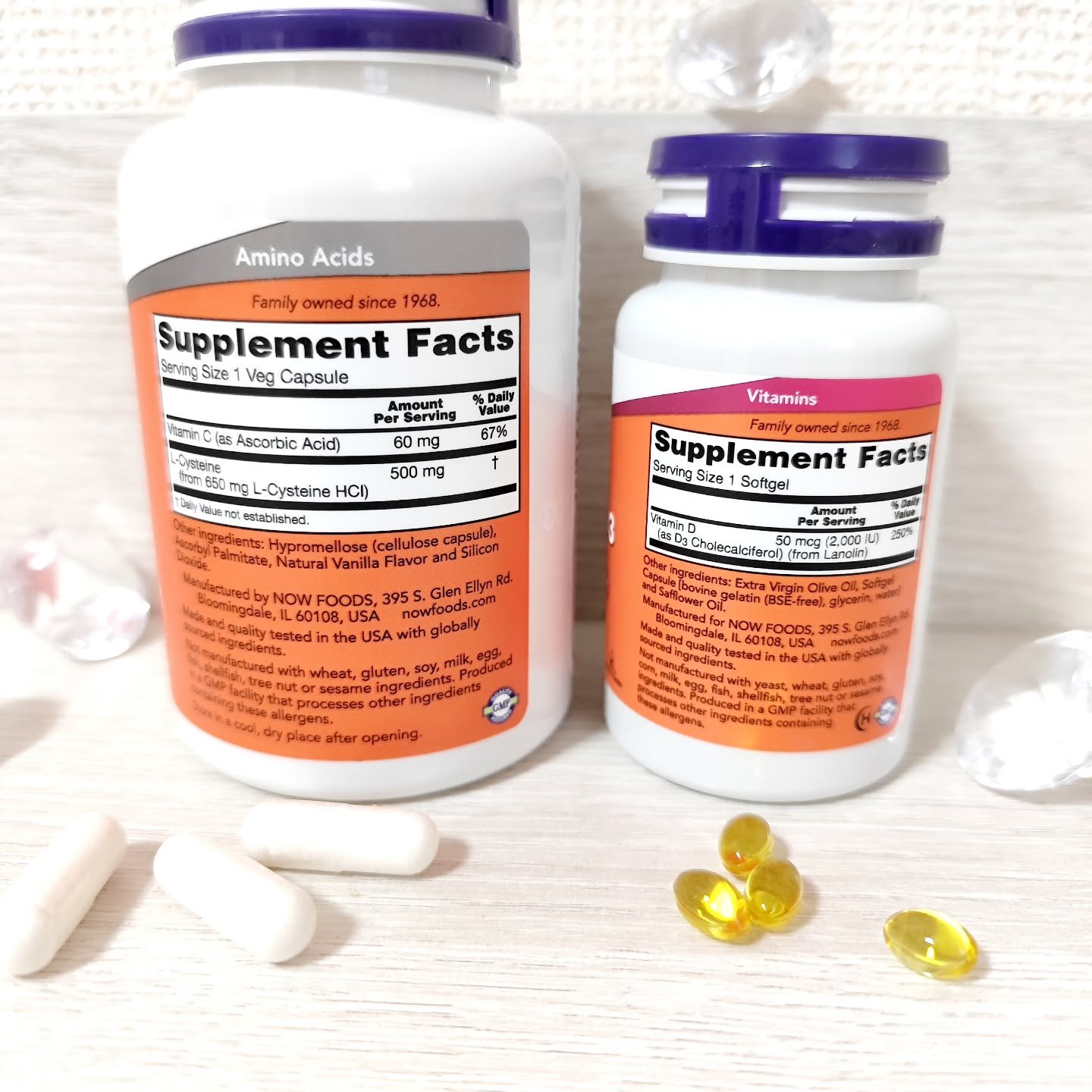 @cmg_pfiの「キレイ習慣サプリセットモニターキャンペーン」に当選して、・NOWFoodsビタミンD32,000IU30粒 1個・NOWFoodsL-システイン500mg90粒 1個をいただきました♡健康も美容も気になるので嬉しい✨✨さっ...