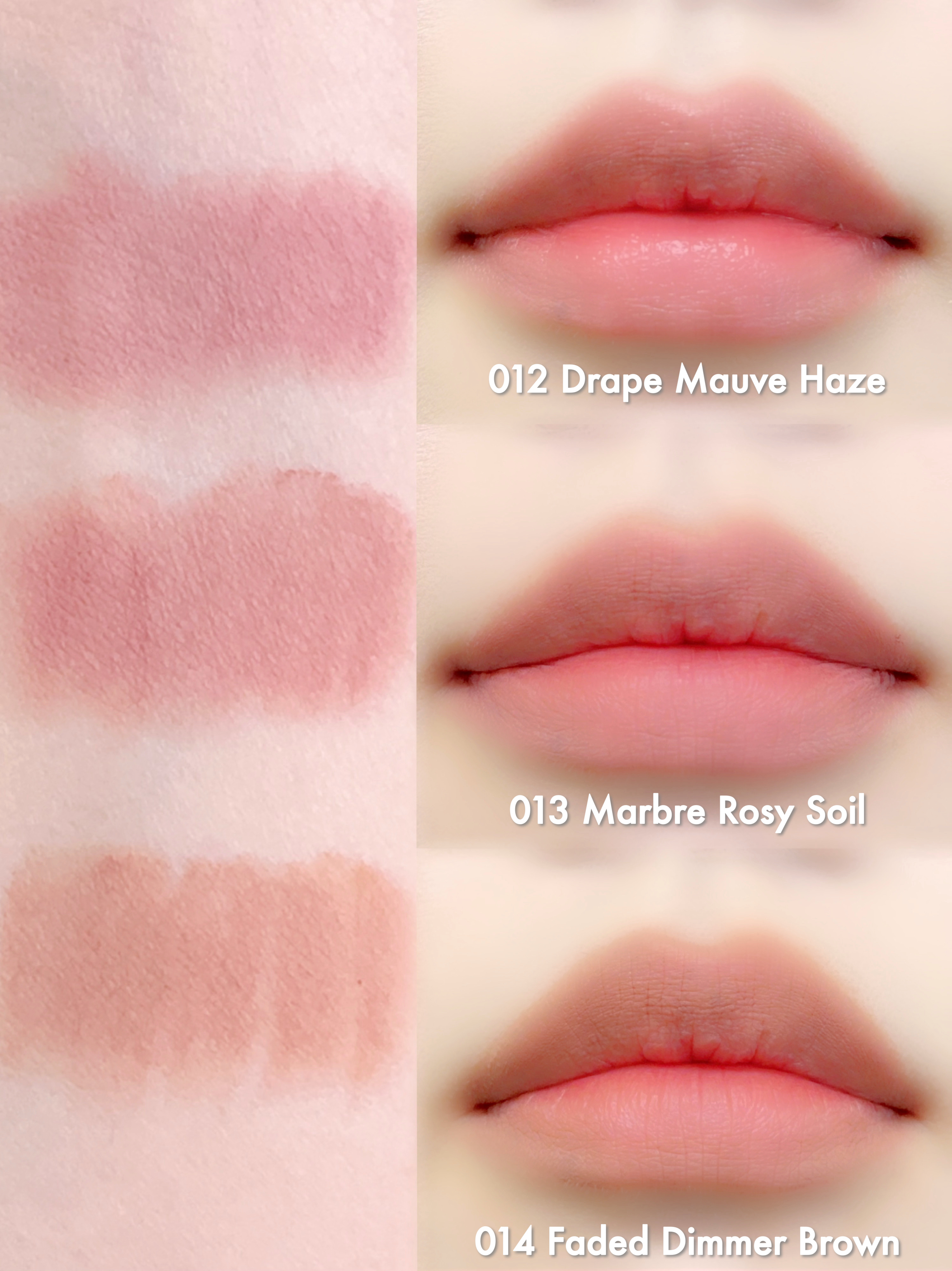 私的に、色持ちの他に'落ち方が綺麗か'もかなり重要視しています🤔 オフィスメイクにも、デートにも、毎日メイクにも使いやすいラインナップです🫰🏻 ブルベのイエベ寄せメイクにも💯