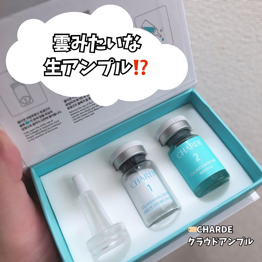 CHARDE(@charde_jp_mkt)様から頂きました🎁🎀クラウドアンプル🎀お家でサロン級のケアが出来ちゃう?!✨1剤には7種のヒアルロン酸と低分子コラーゲンが配合されていて、2剤には臍帯血幹細胞培養液抽出物が配合されてるよ✨1と2が合...