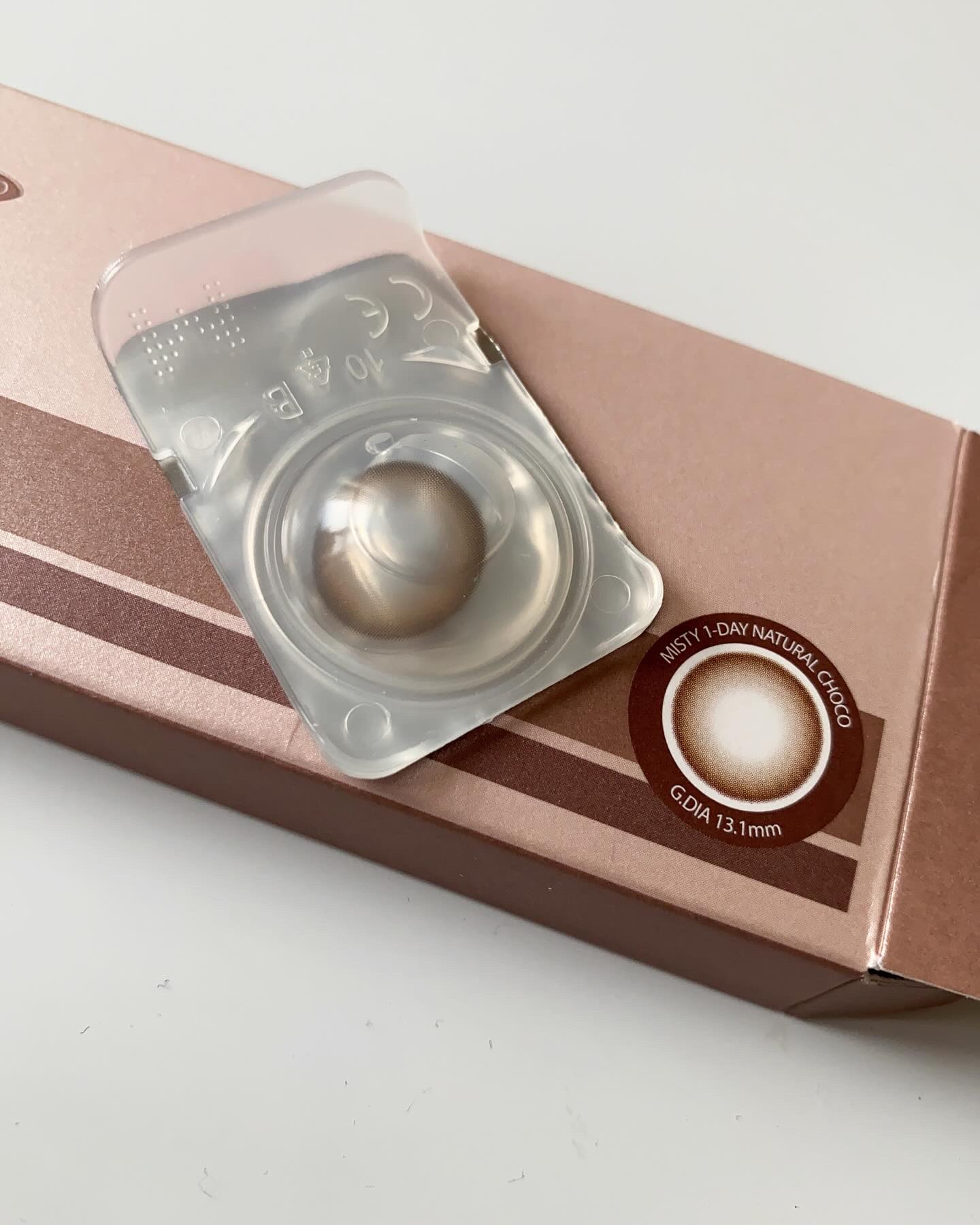 ソフトなブラウン×くっきりフチのチョコカラコン。グラデーションのデザインですが1色なので、焦げ茶色の瞳の私がつけるとグラデ感はほぼ分からない。 しっかり目元を盛りたい方に○ 着色直径は表記よりもやや大きめに感じました! 実際に鏡などで見てみるともう少し落ち着いた控えめブラウンです🫶