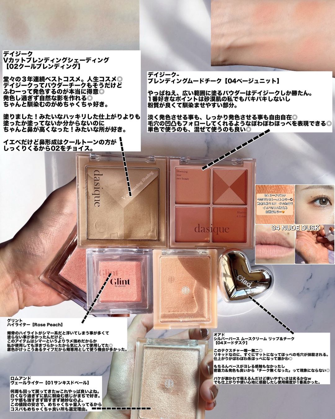 頬骨のハイライトがシマー系だと浮いてしまう事が多くて