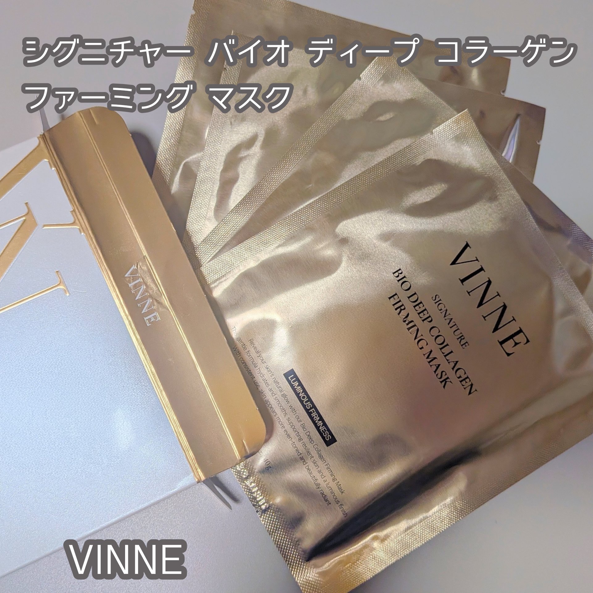 VINNEシグニチャーバイオディープコラーゲンファーミングマスクをお試しさせていただきました。高級感のある素敵なデザイン。ぷるんぷるんのマスクで使うのが楽しい!上下に分かれているので、顔に密着させやすいです。ぴたっと吸いつくように密着してくれ...