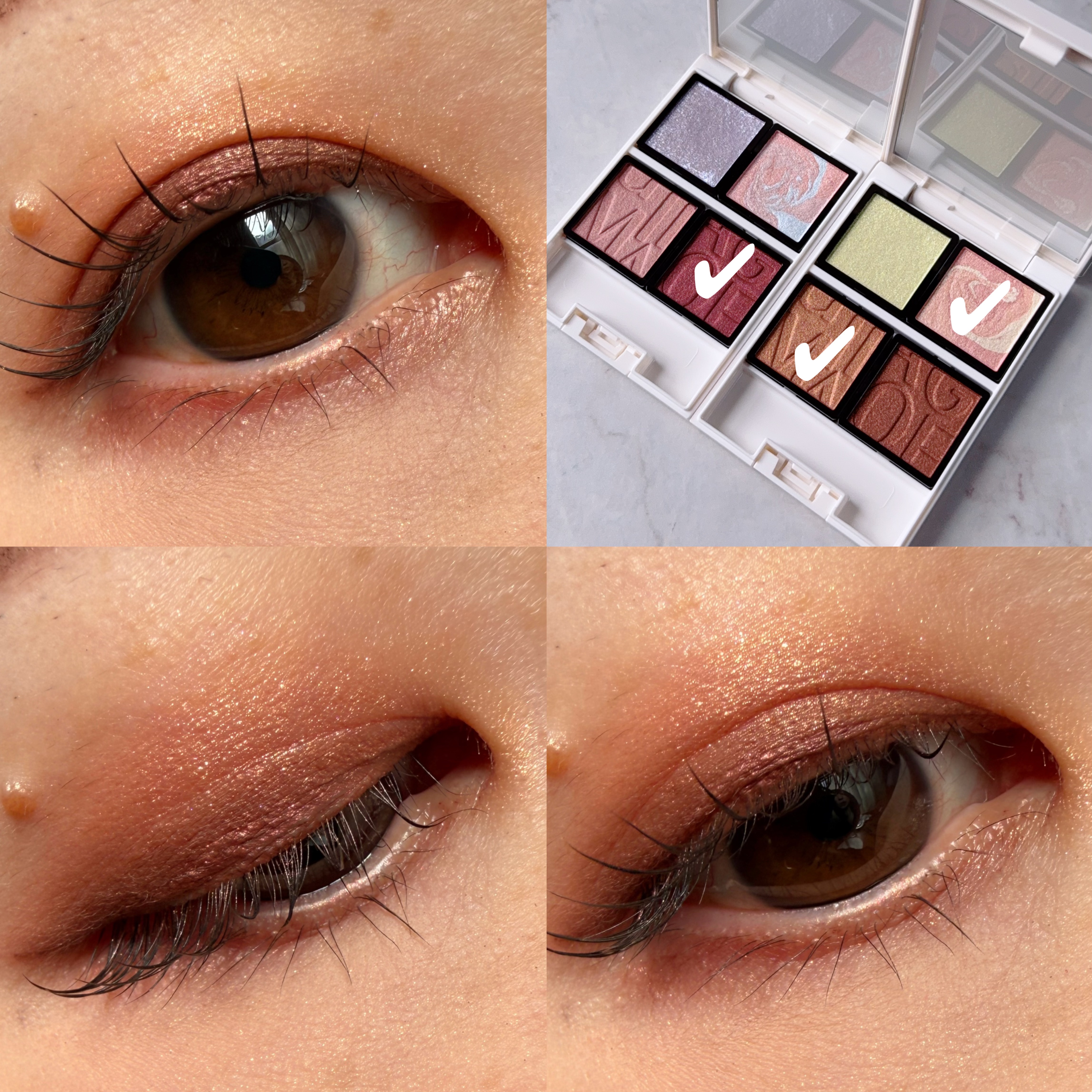 ︎︎︎︎︎︎☑︎マキアージュカスタマイズアイカラーアソートロージーマーブルアソート(限定)使うの楽しみにしてたマキアージュの限定💜実際使うとより可愛い...!実物の方がもっとラメがキラキラしてて夜までラメもしっかり残ってた✨️これはもうかなり...