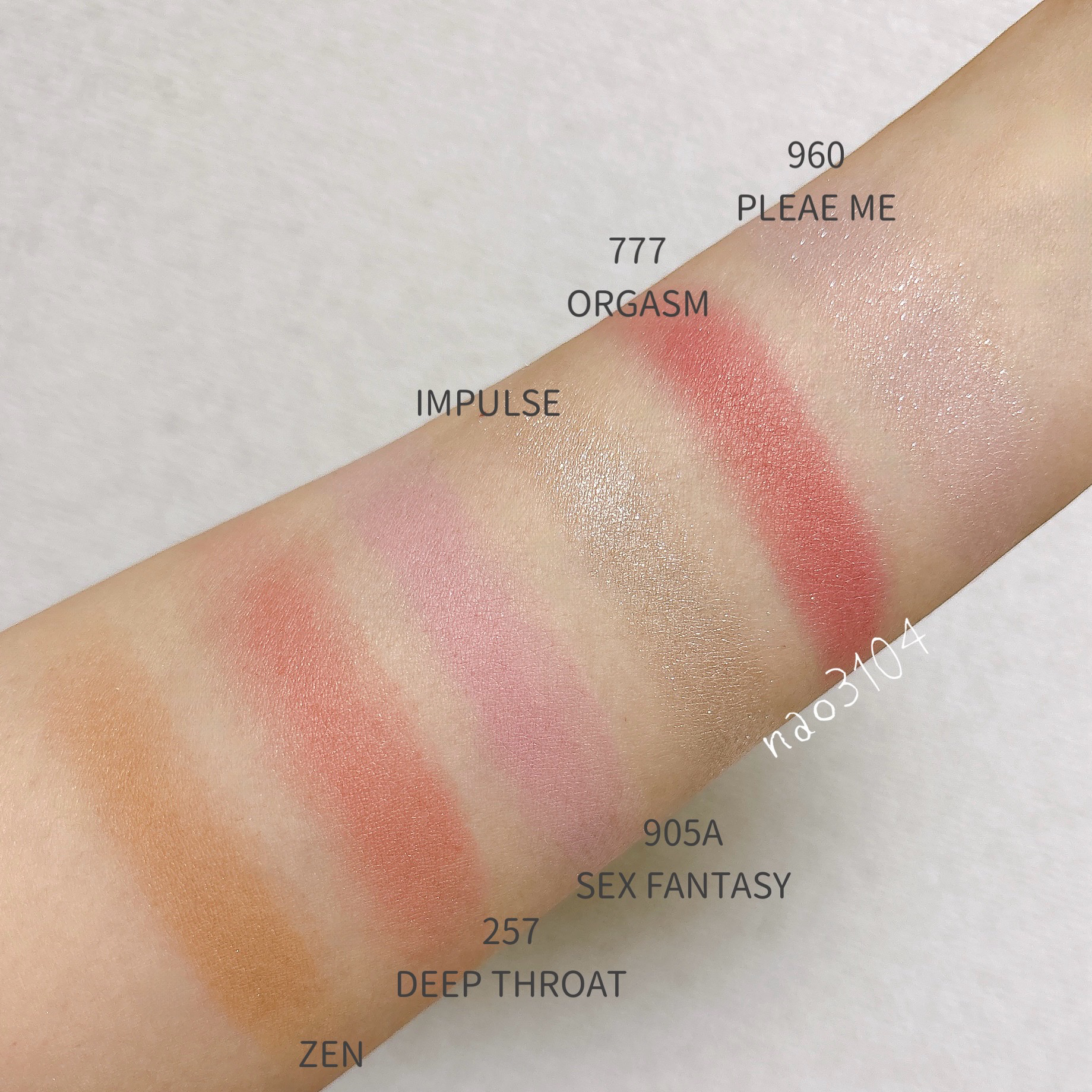 前回の全色スウォッチは #なおCHANEL 62よりも一見青み?灰み?が強いものの私でもなんなく使える馴染み色。 わずかにローズ感じるくすみピンク。ピンクリップが似合わない私ですがこれは挑戦したい!と思うオシャレな色。 ラックの中では数少ないコーラル。ついつい62番ばかり使ってしまいそうでしたが、PCスプリングを全面に演出したい時はこれ♪ 65より明度の高い限りなくピンク寄りのコーラル。手に出した時は蛍光っぽいなーと思ったけど、つけるとしっくり。この春らしい明るくて程よい黄みのある可愛い色です。 こちらも長期欠品していた人気色。ブラウンリップに挑戦したいけど、顔色悪くなっちゃう…とか、唇だけ目立っちゃう…って方にオススメしたい! 10月発売の新色。待っていたオレンジ系コーラル!個人的にはこのリップのシリーズで一番好き! こちらも10月発売の新色。82よりややしっかり発色で、秋冬にピッタリです。